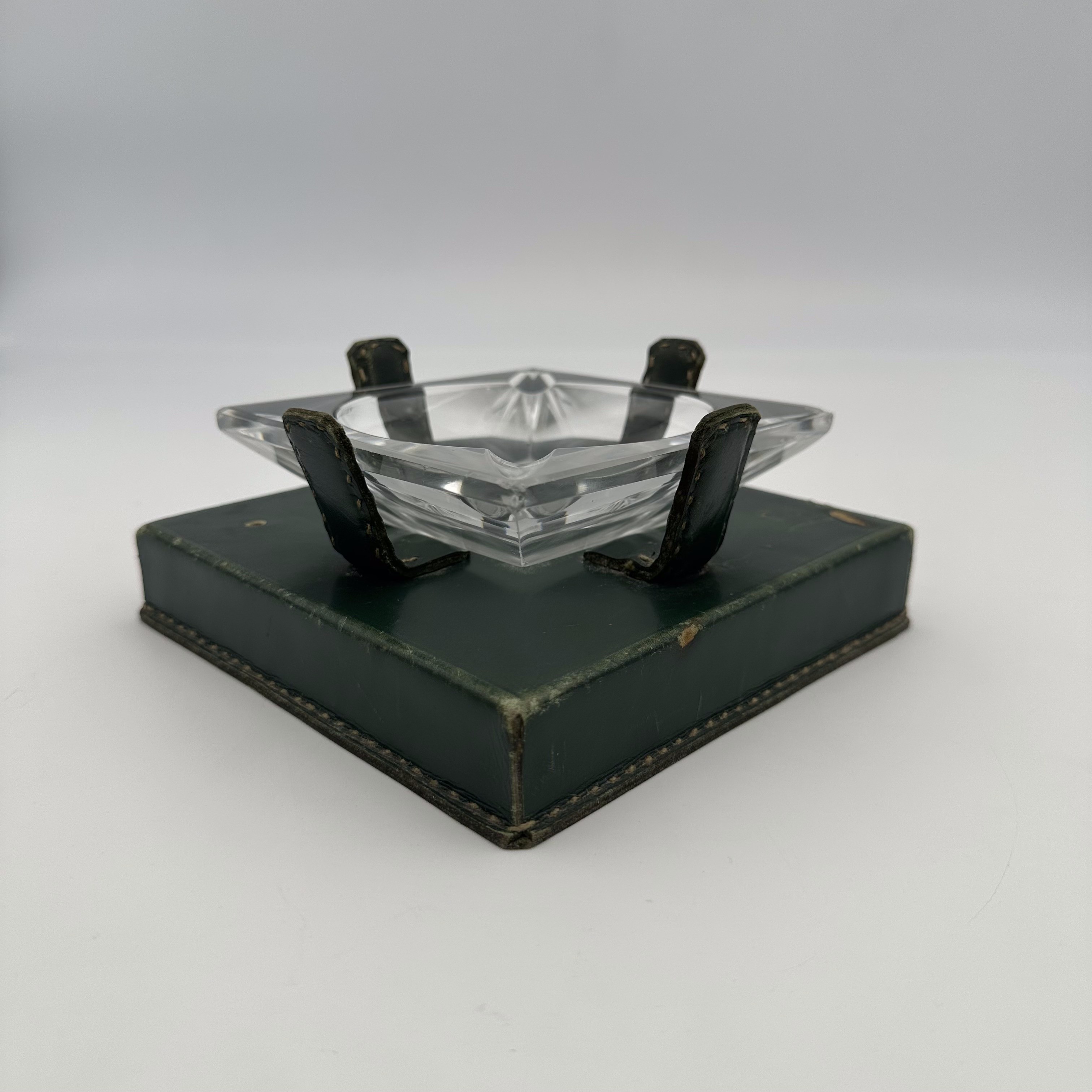 Cendrier en Cristal et Cuir Vert dans le Goût de Jacques Adnet, Années 1950.