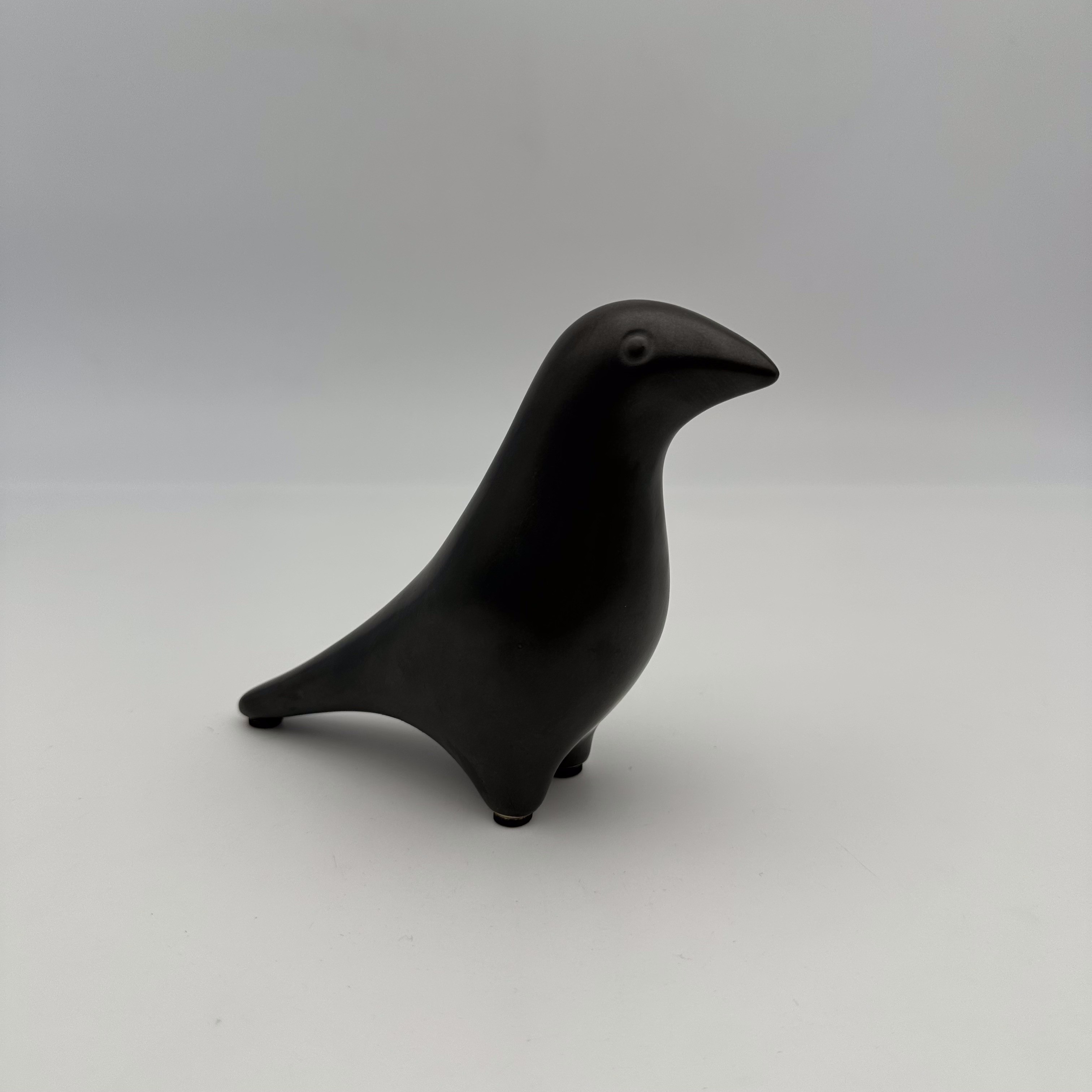 Superbe petite sculpture animalière moderniste figurant un oiseau très stylisé. Céramique recouverte d'une belle glaçure noire satinée, dans le plus pur esprit des créations de Georges Jouve. Dimensions : Largeur : 16 cm | Profondeur : 7 cm | Hauteur : 13,5 cm.