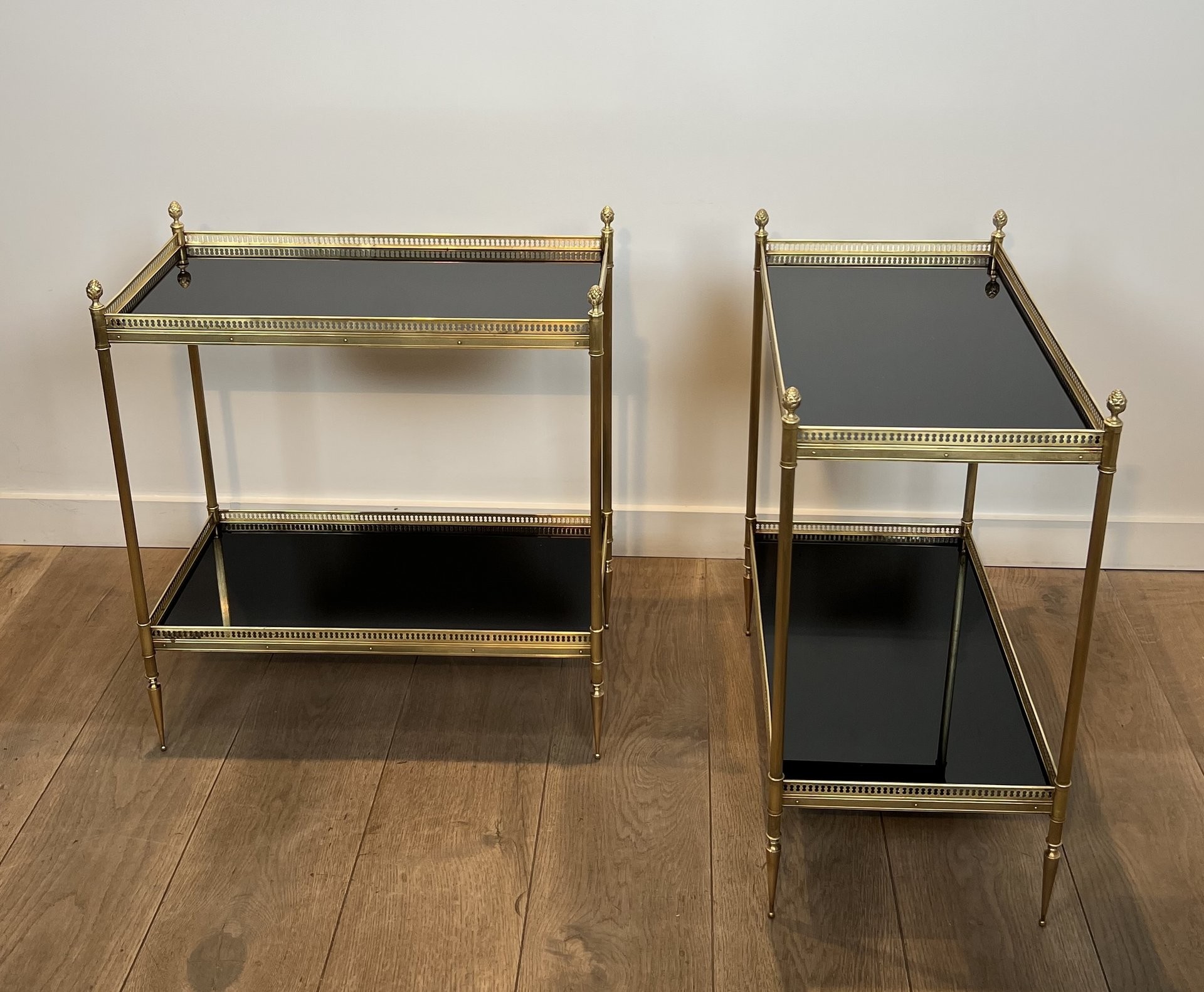 Paire de boûts de canapé de style néoclassique en laiton et plateaux de verre laqués noirs. Travail Français de la Maison Jansen. Vers 1940