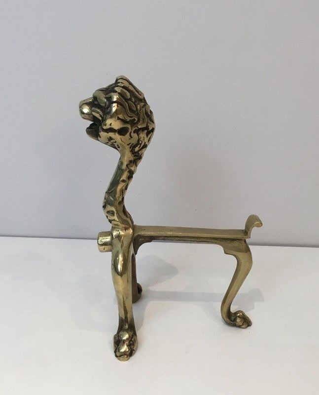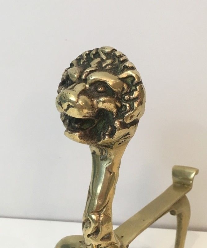 The lion has been a symbol of power, sovereignty, and majesty in French decorative arts since the Renaissance, adorning royal escutcheons and the furnishings of the grandest interiors. By the turn of the twentieth century, the motif had transcended its purely heraldic origins to become a favourite of the ébéniste and the bronzier alike, who reinterpreted it with increasing naturalism. These andirons, dating to around 1900, belong to the confident tradition of French fin-de-siècle bronzework, when Parisian foundries were producing pieces of extraordinary quality for the luxury interiors of the Belle Époque.
