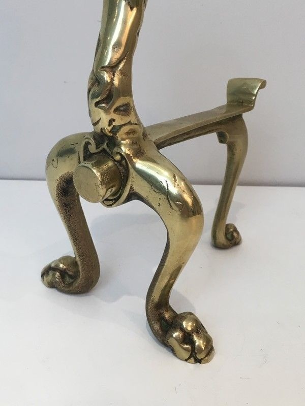 Beyond their functional role as supports for fireplace logs, these andirons are sculptural objects of considerable presence. Placed in a fireplace of generous proportions — a Louis XV trumeau surround or a carved stone mantelpiece — they transform the hearth into a theatrical centrepiece. Equally, displayed on a console or mantlepiece as decorative bronzes, they command attention with quiet authority: eternal guardians of the domestic flame.