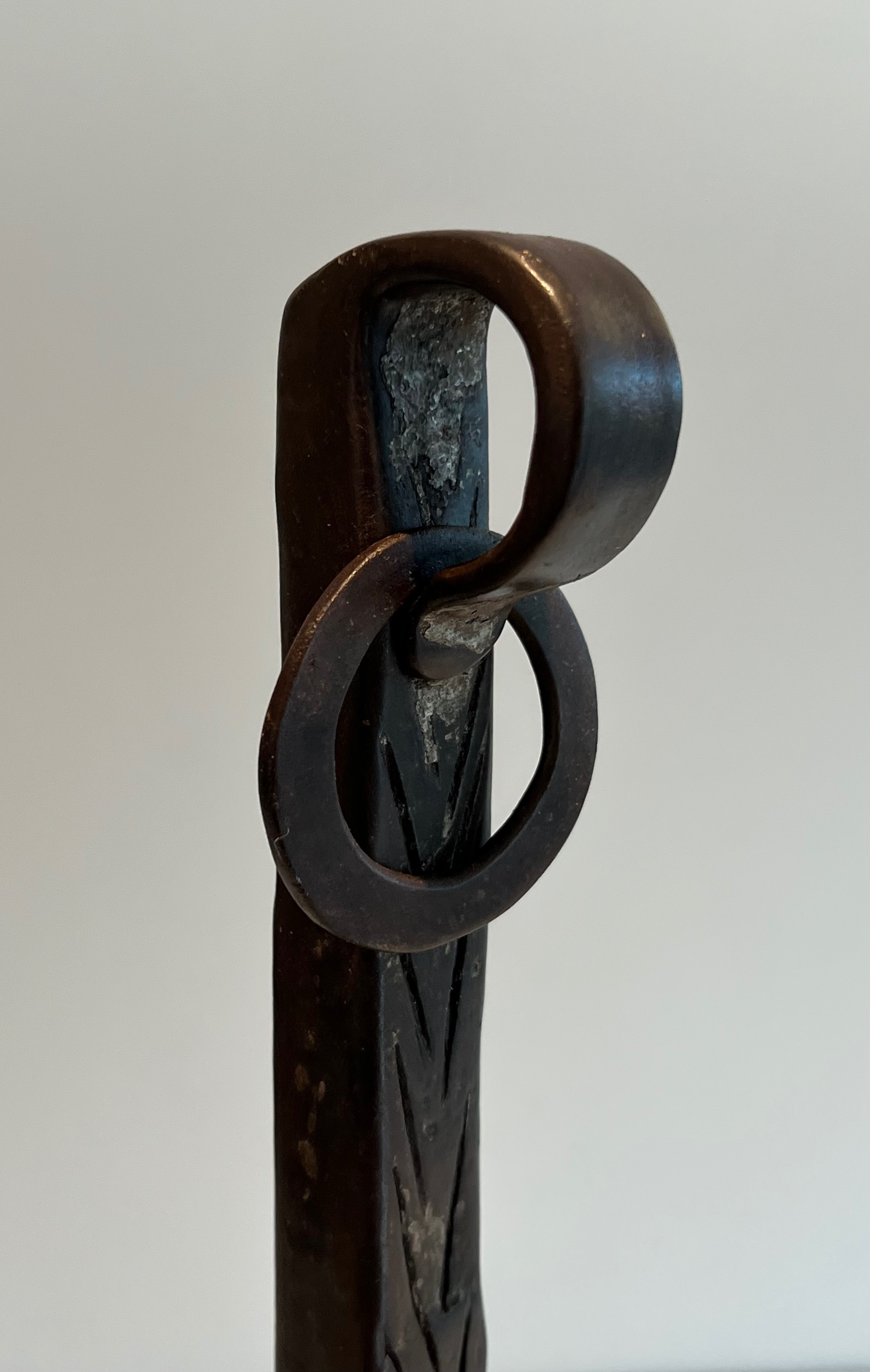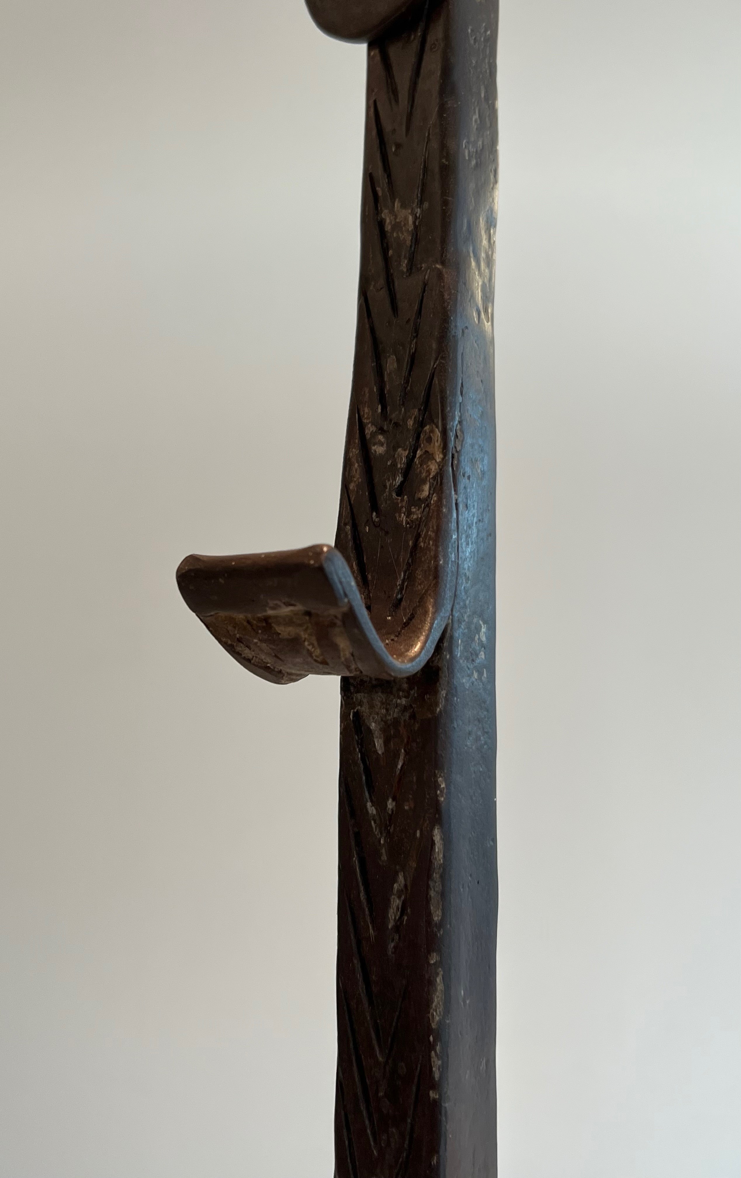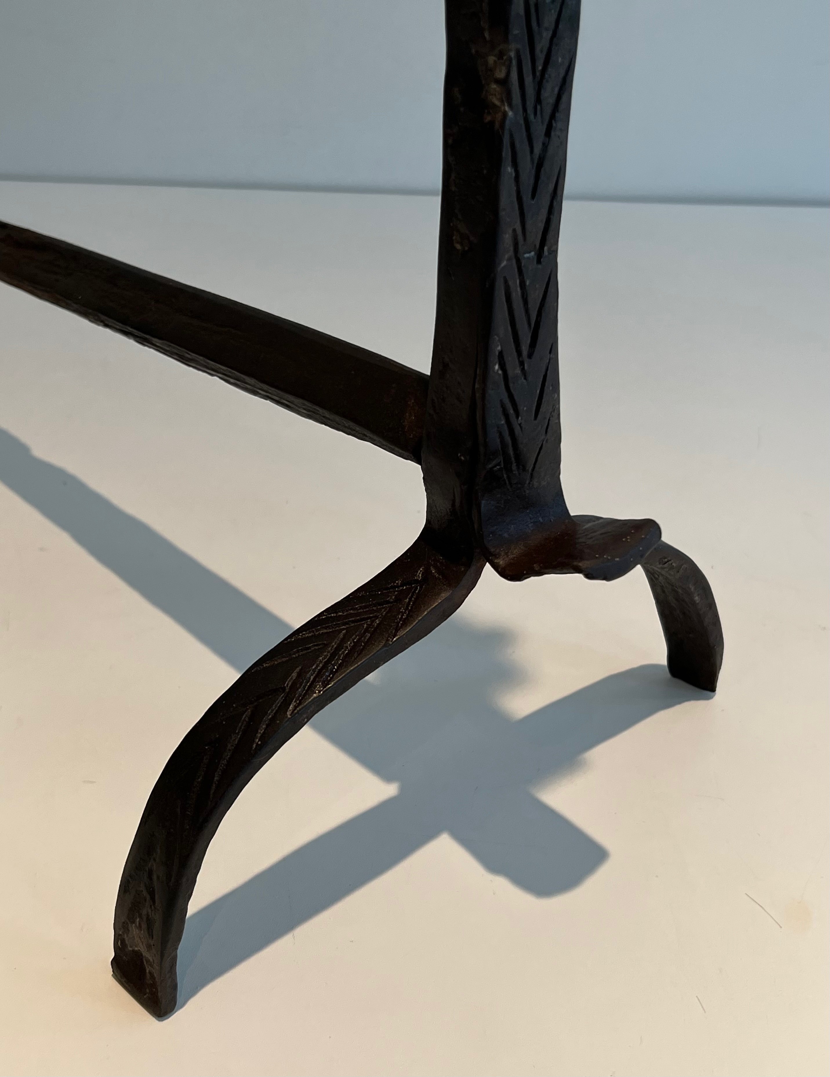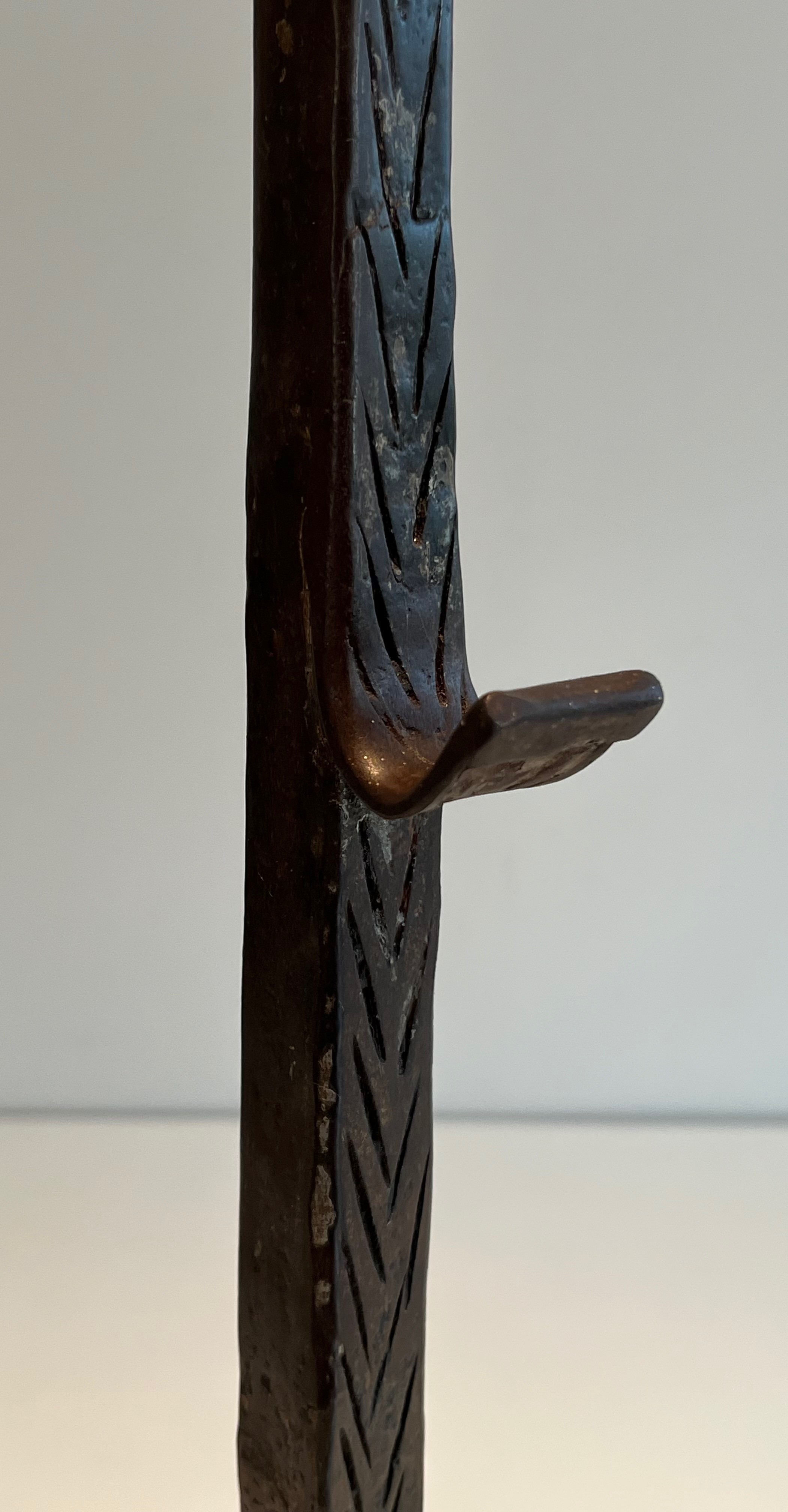 A pair of landiers of this age and quality transcends utility to become a work of decorative art in its own right. They would bring historical gravitas and tactile beauty to a large fireplace — whether in a country house, a converted barn, or a salon that appreciates the patina of authentic period ironwork. An exceptional acquisition for the collector of French decorative metalwork and vernacular antiques.