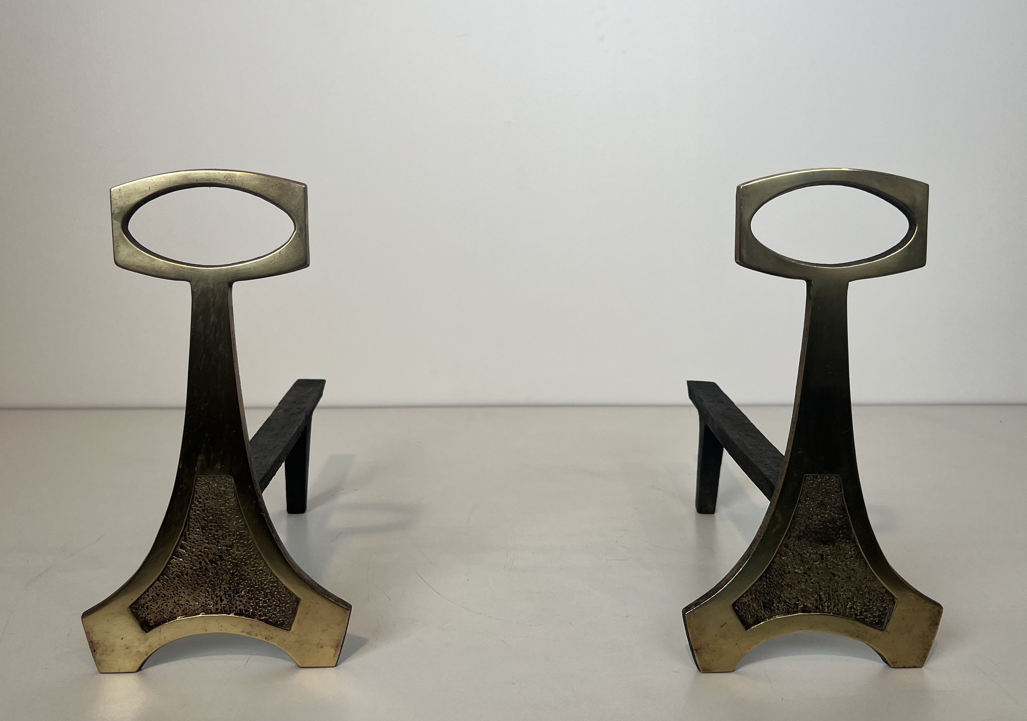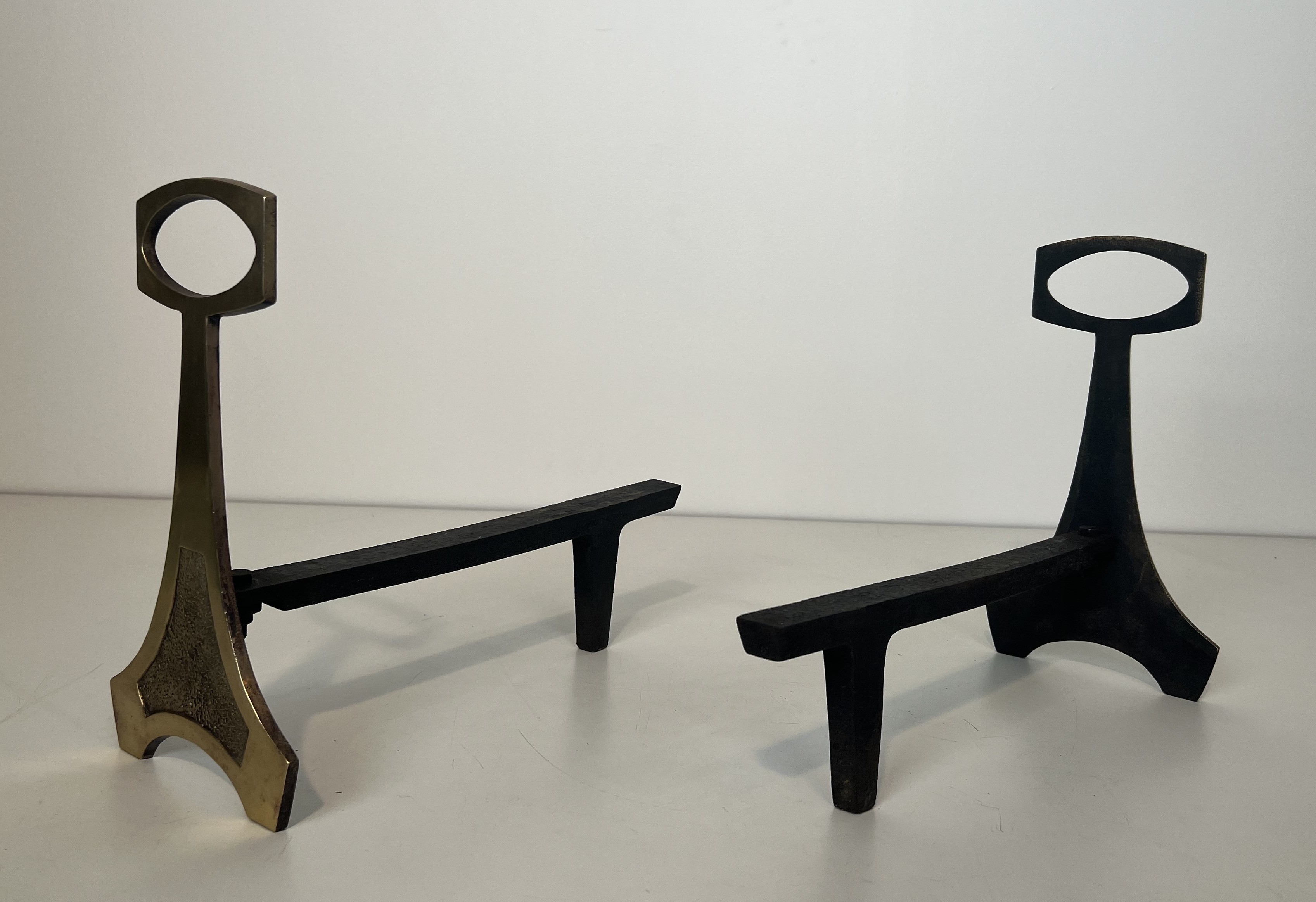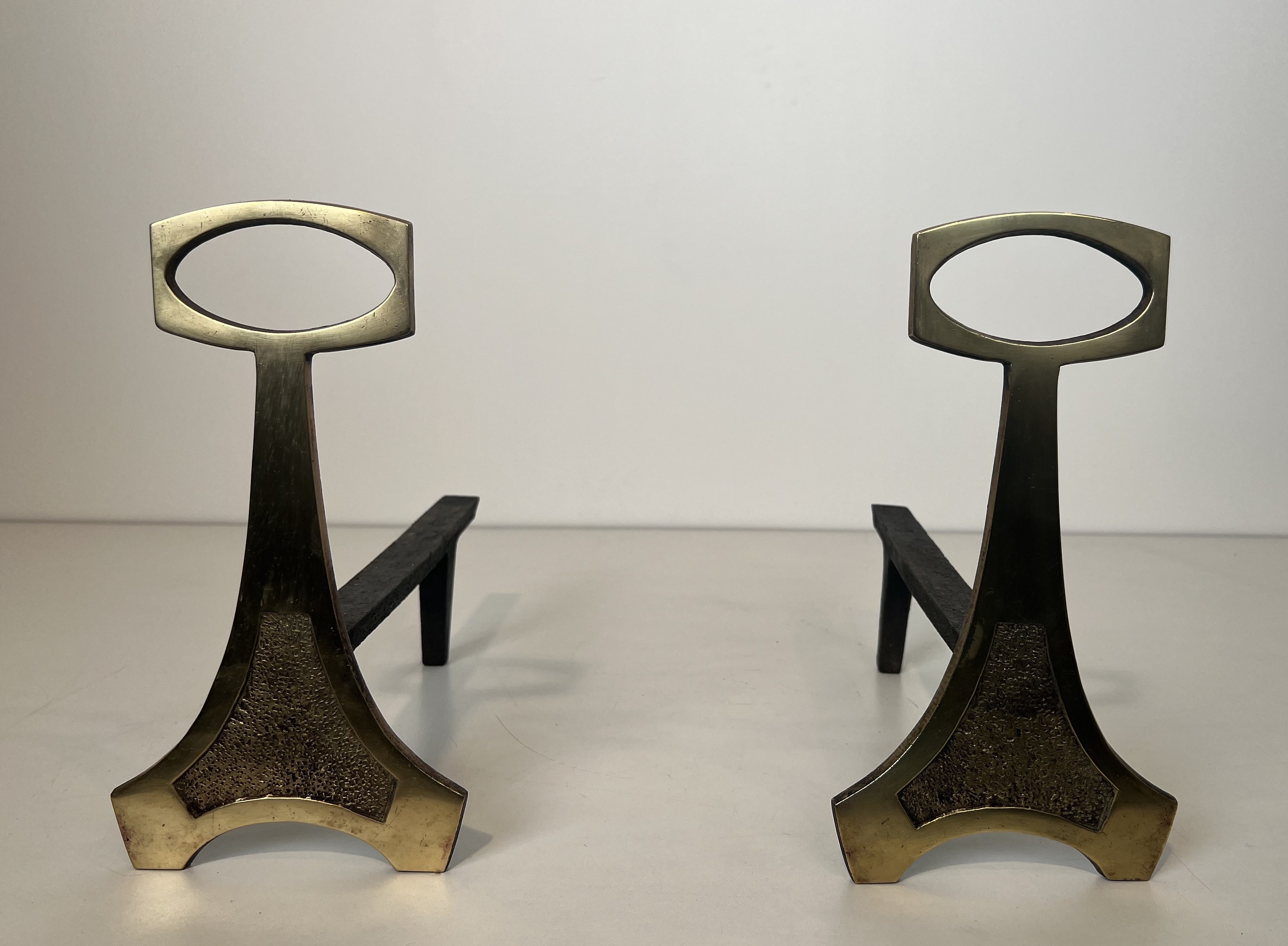 In France, the Arts & Crafts aesthetic found fertile ground, merging with indigenous decorative traditions to produce objects that celebrate material honesty and artisanal skill. These andirons reflect that synthesis: the warm glow of polished brass set against the darker, more austere wrought iron creates a dialogue between luxury and restraint, ornament and function, that is central to the Arts & Crafts vision.
