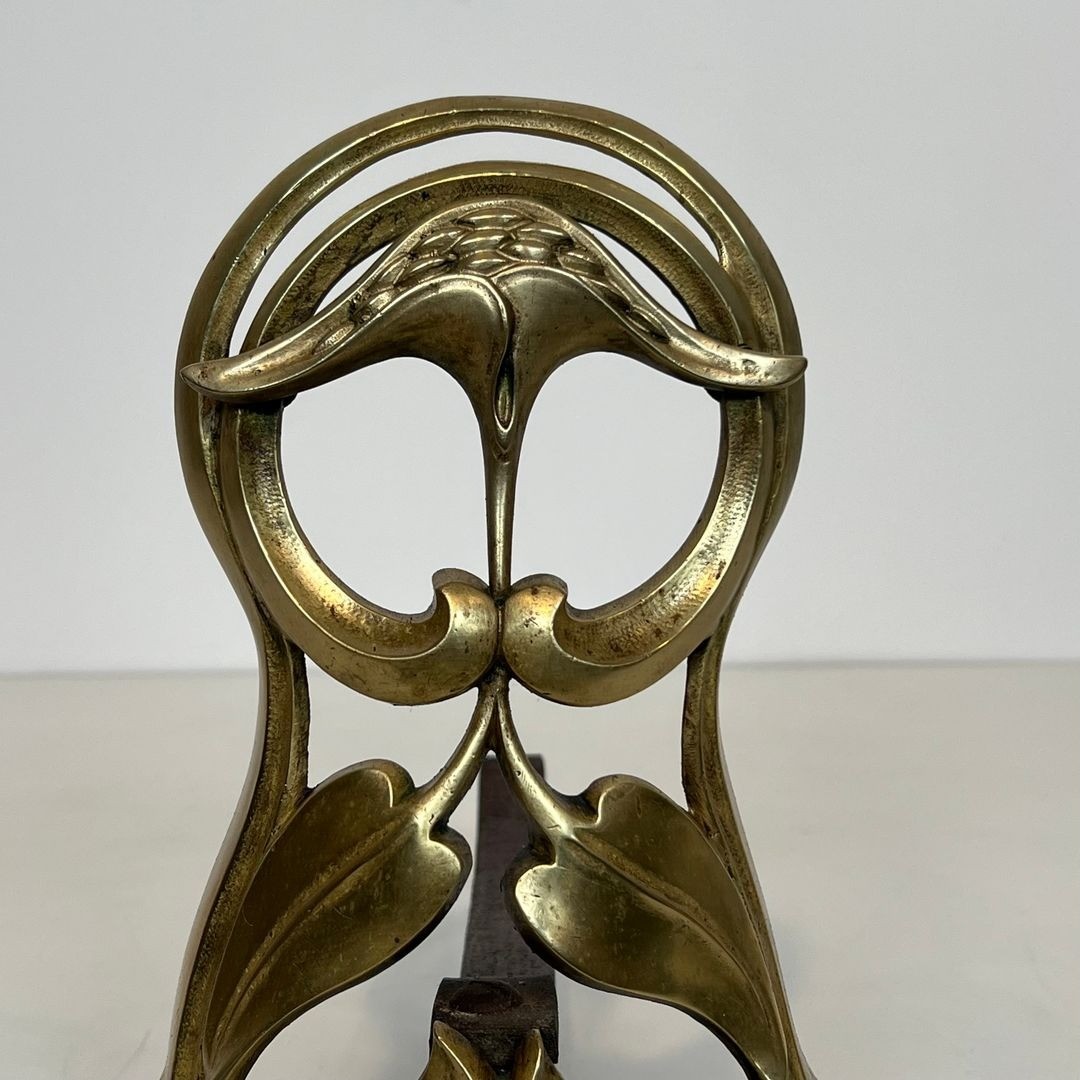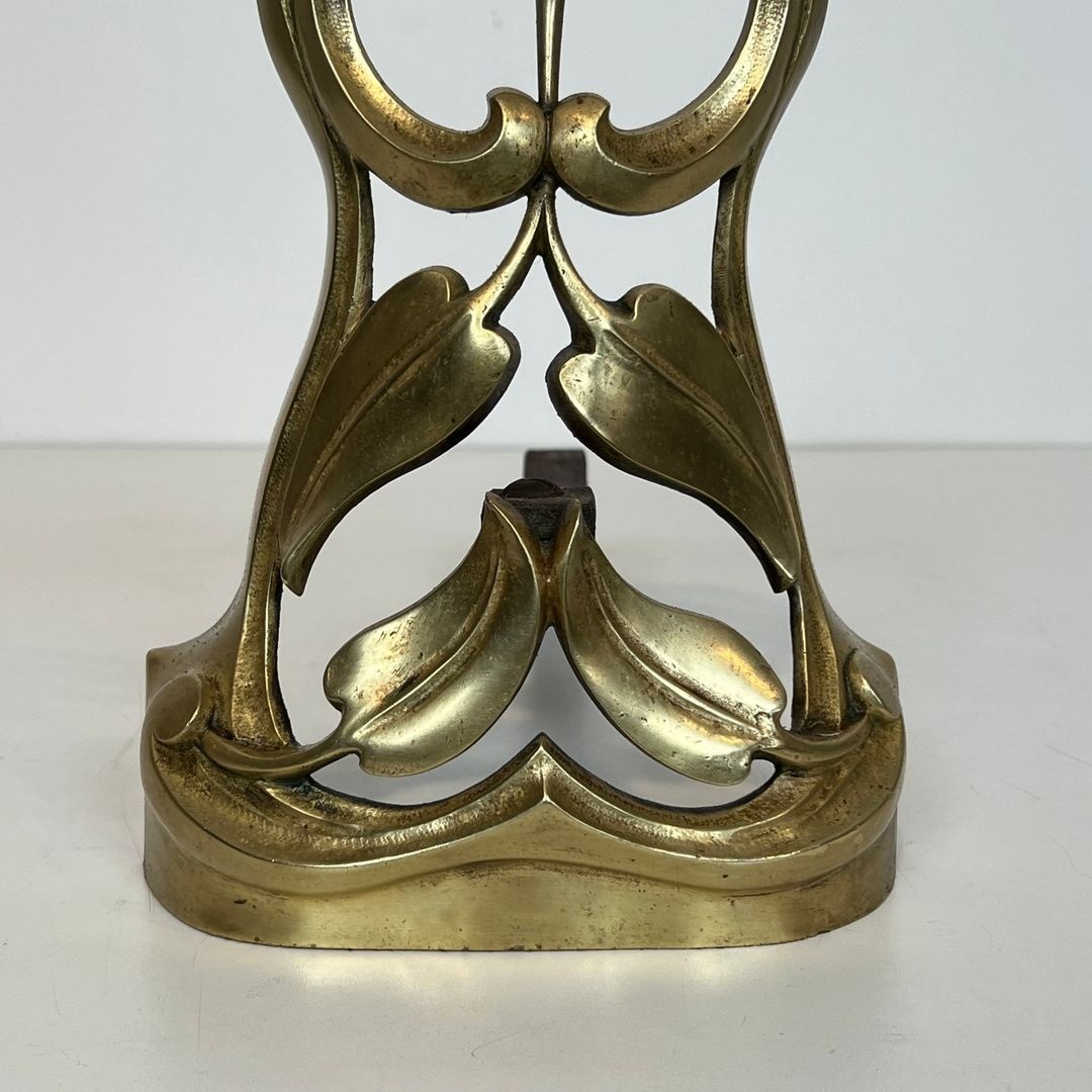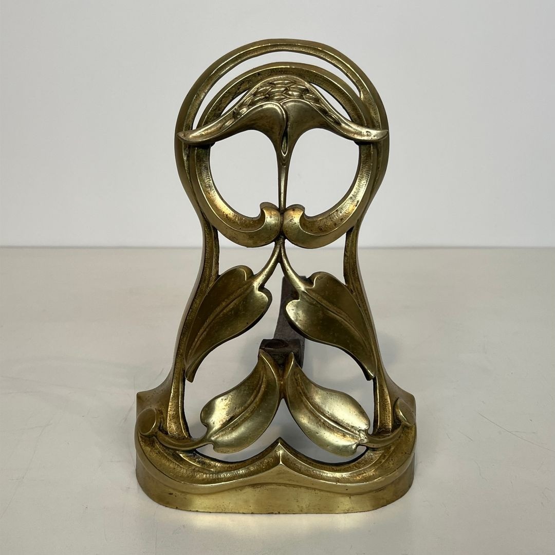 French Art Nouveau, which flourished between approximately 1890 and 1910, drew its inspiration from the organic world—flowers, vines, water, and the sinuous female form—translated into fluid, curvilinear lines that broke decisively with the historicist revivals of the nineteenth century. In the applied arts, and most particularly in cast metalwork, this vocabulary produced objects of extraordinary complexity in which ornament and structure become inseparable. Bronze and gilt-bronze andirons of this quality were produced by leading foundries in Paris and Nancy, the twin capitals of French Art Nouveau production, for the finest bourgeois and aristocratic interiors of the Belle Époque.