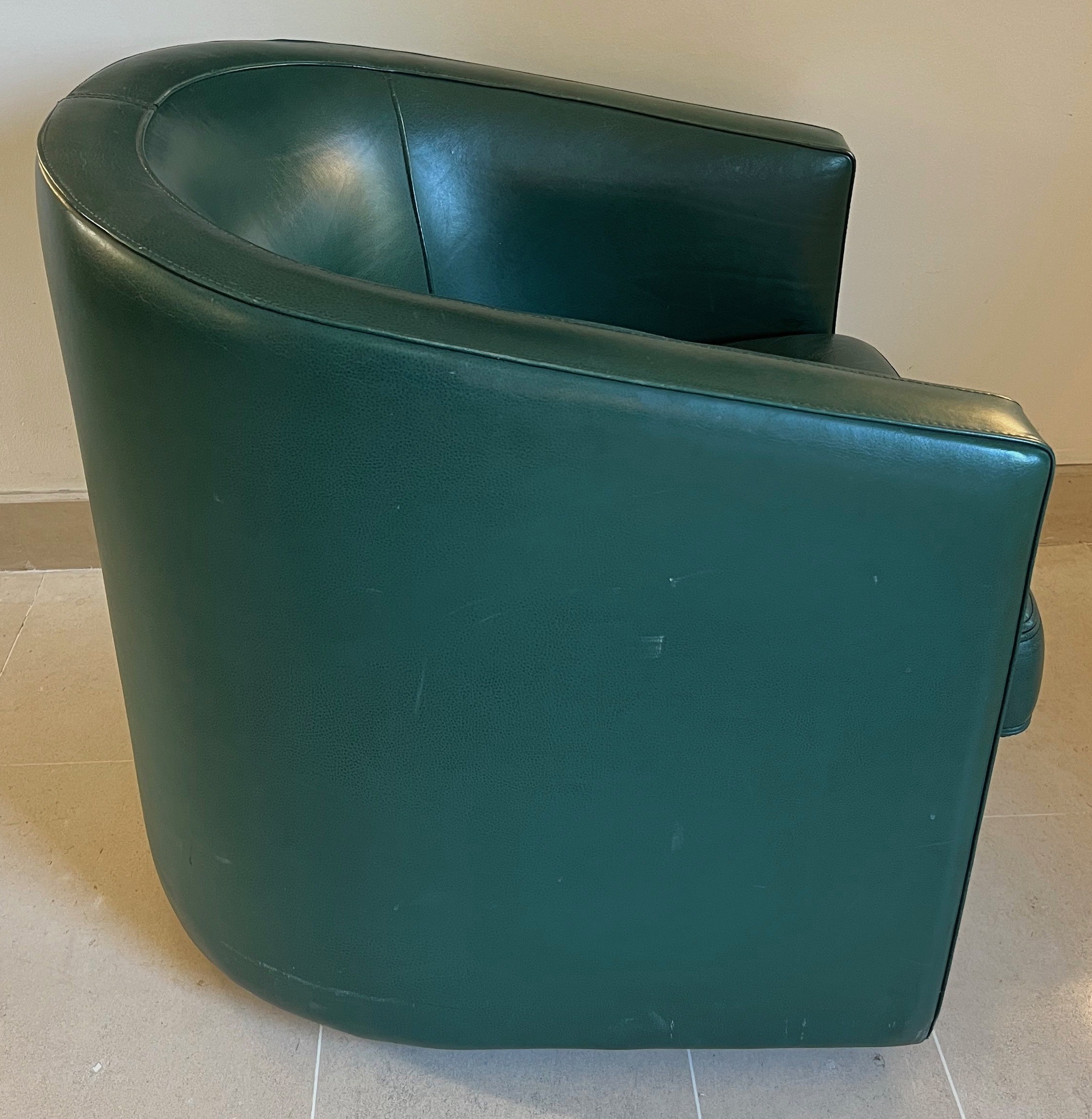 Art Deco Style Swivel Dark Green Leather Club Armchair, French Work, Circa 1980