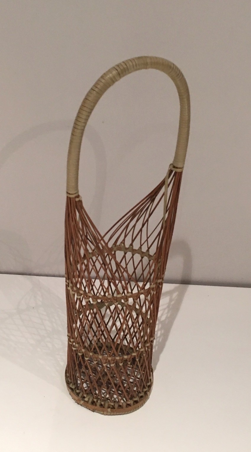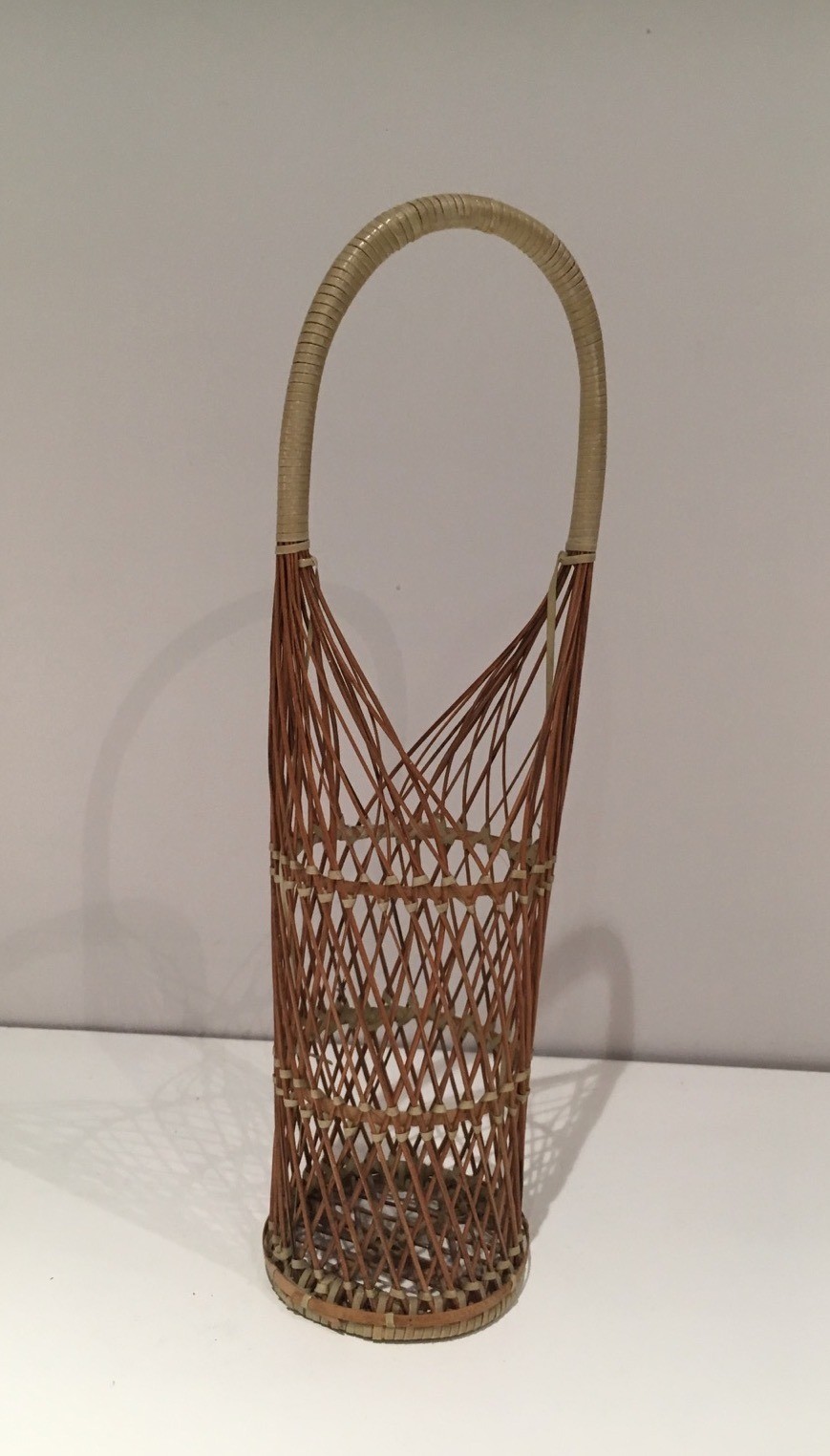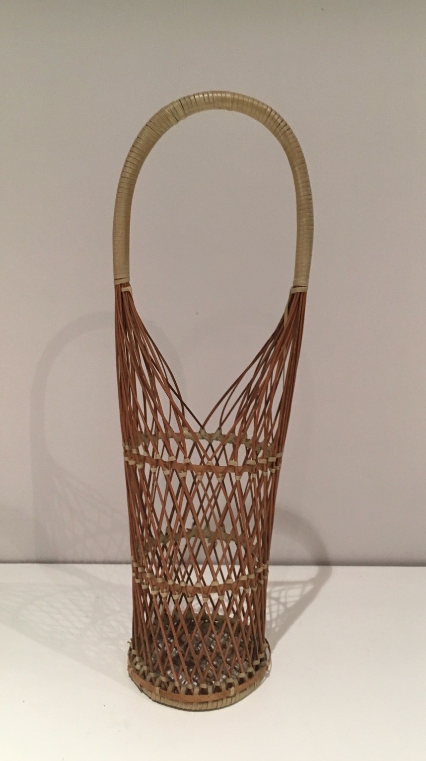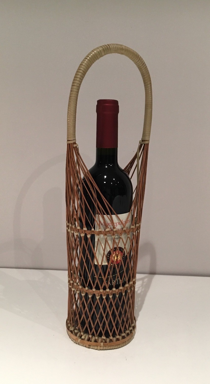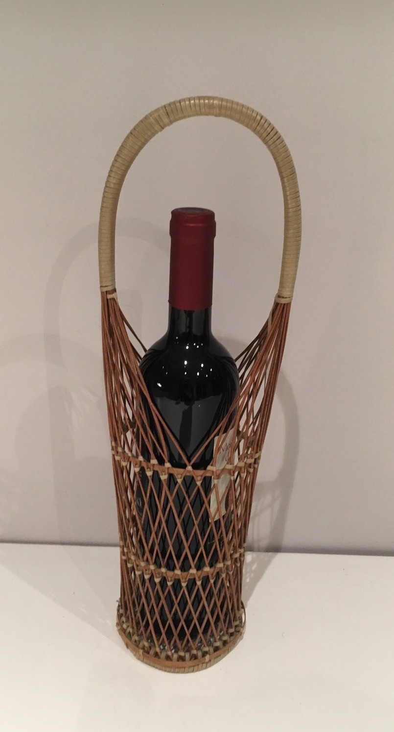 Wicker and basketwork have occupied an honourable place in the French artisanal tradition since ancient times, and the great wicker workshops of regions such as the Val de Loire sustained a tradition of quality and inventiveness well into the twentieth century. In the context of post-war decorative arts, natural wicker objects underwent a significant aesthetic revaluation, with designers and decorators recognising the organic warmth and tactile appeal of this traditional material as a counterpoint to the increasingly synthetic world of mass production. This bottle holder participates in that tradition of elevated basketwork.