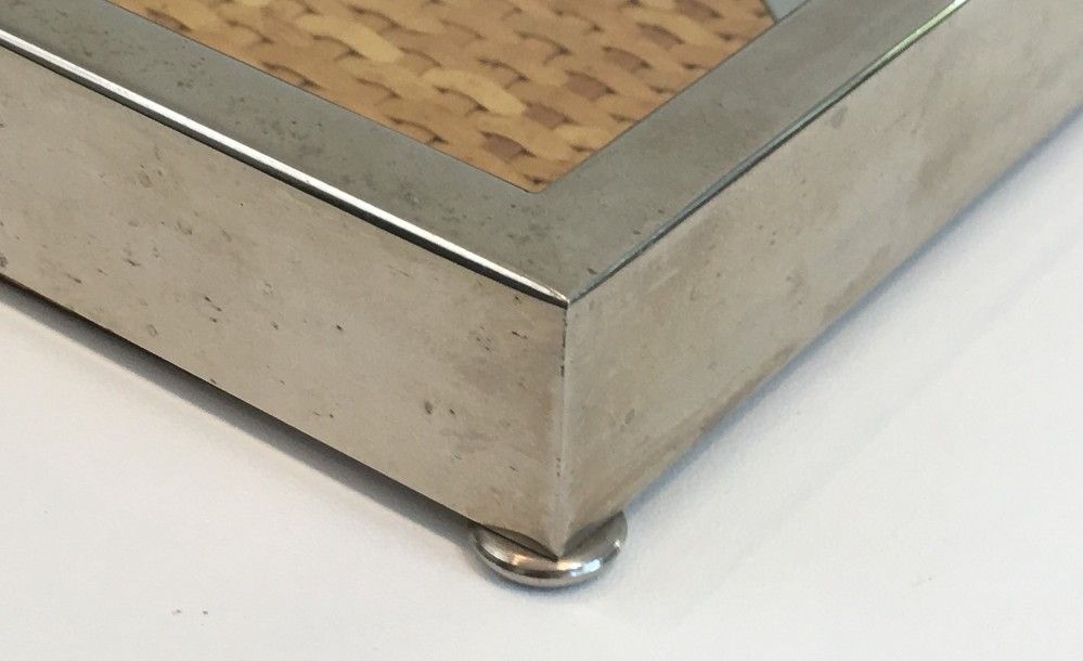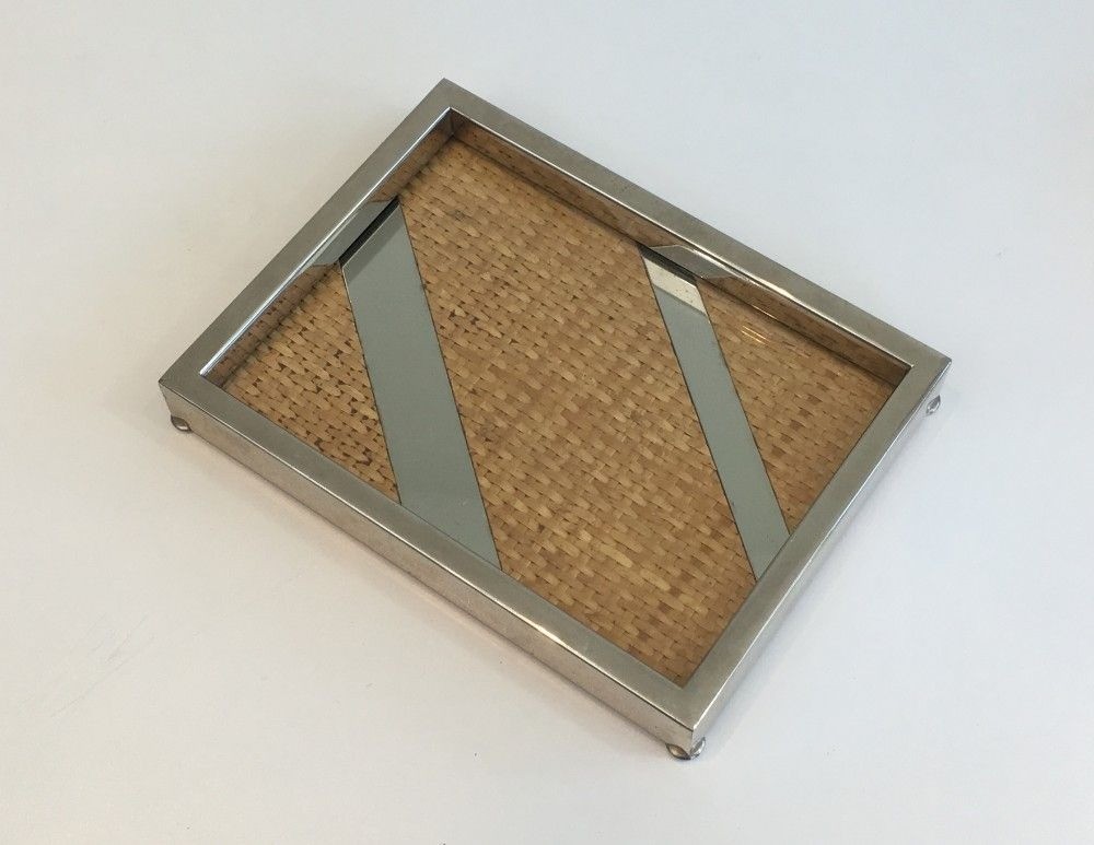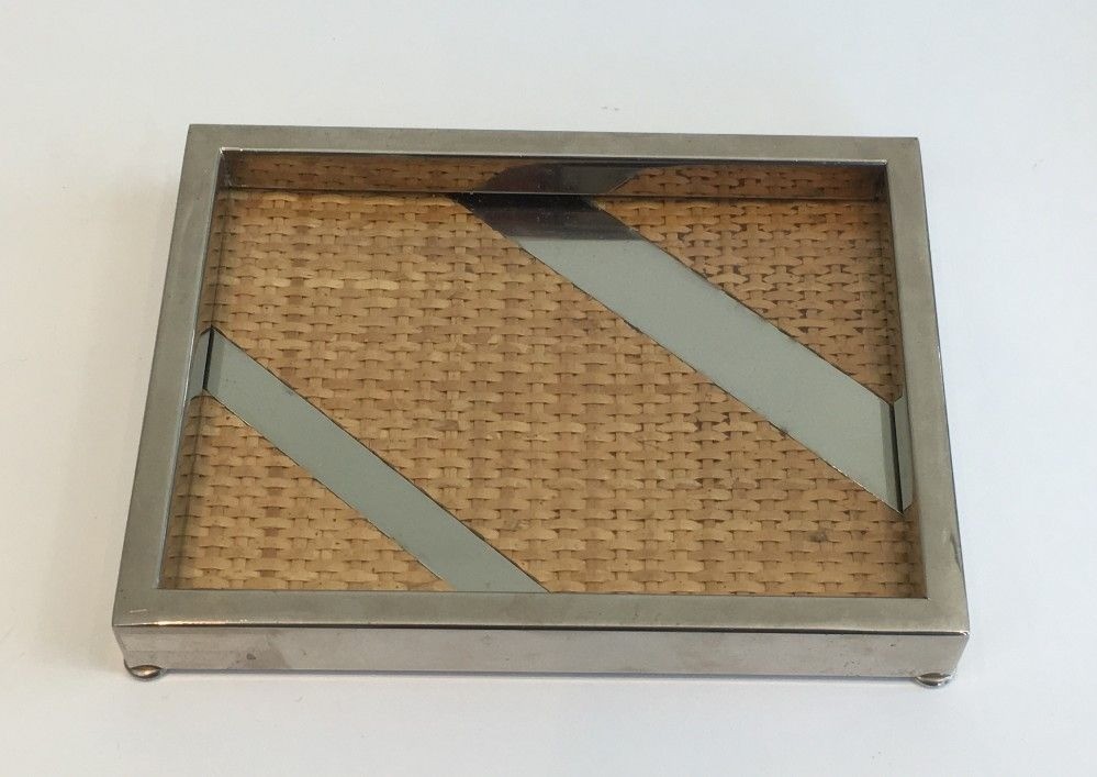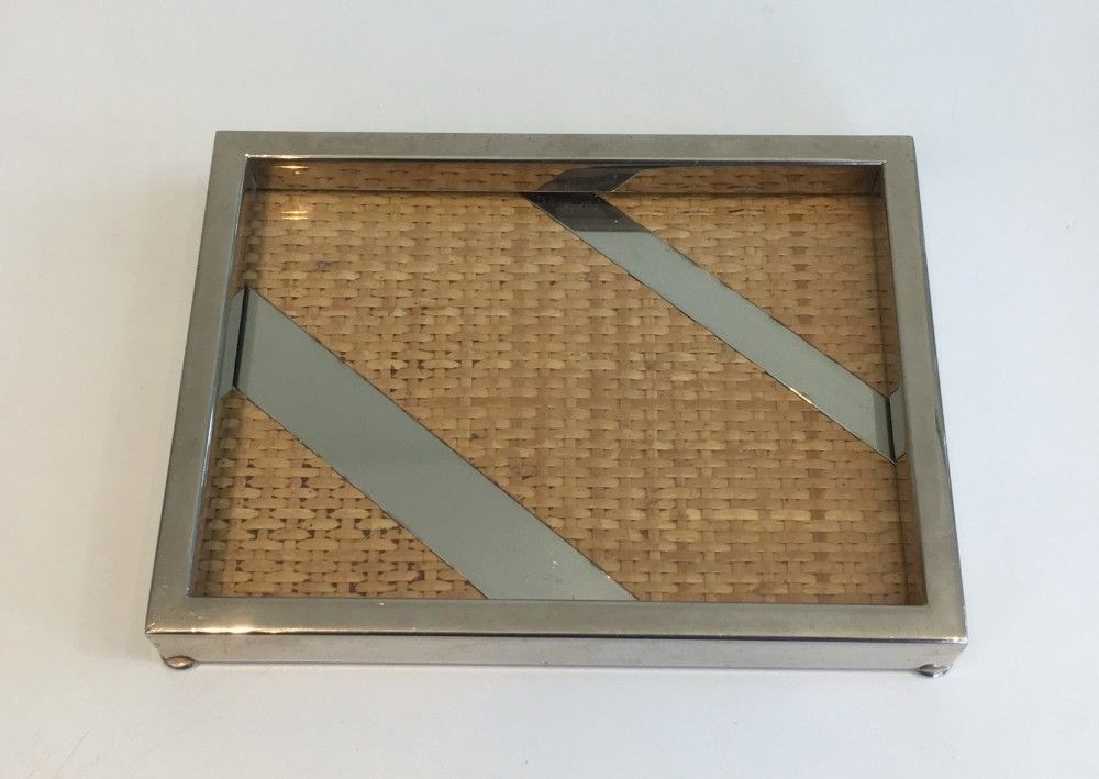 Decorative Chrome and Straw Vide-Poche. Italy. Circa 1970