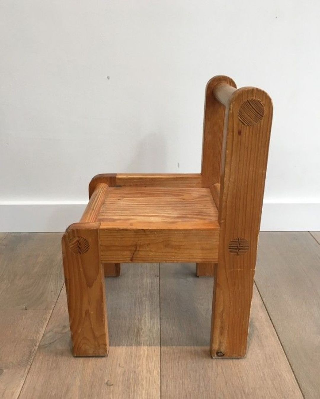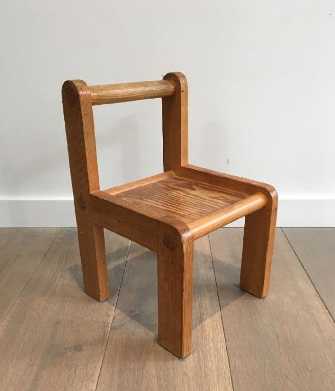 Each chair, with its compact proportions scaled to a young child, combines practicality with a distinctive character that earned the original owner’s description of “unusual.” Whether arranged in a nursery, a playroom, or displayed as decorative objects in their own right, these chairs carry the confident design language of their era with an appeal that endures across generations.