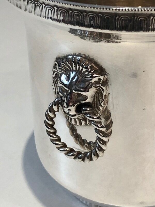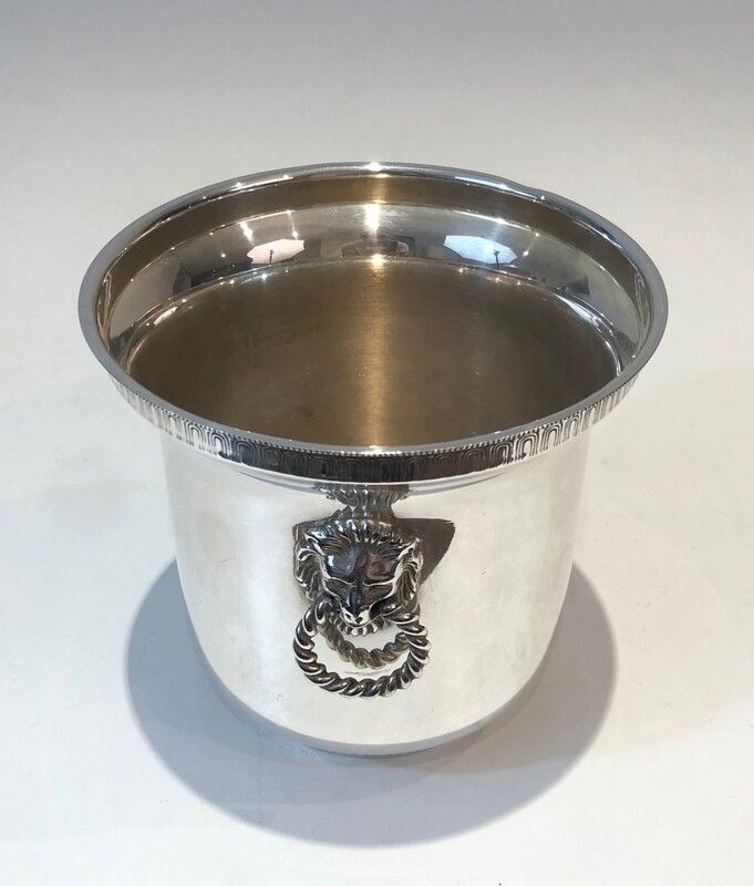 Silver Plated Champagne Bucket with Lion Heads Handles. French. Circa 1930