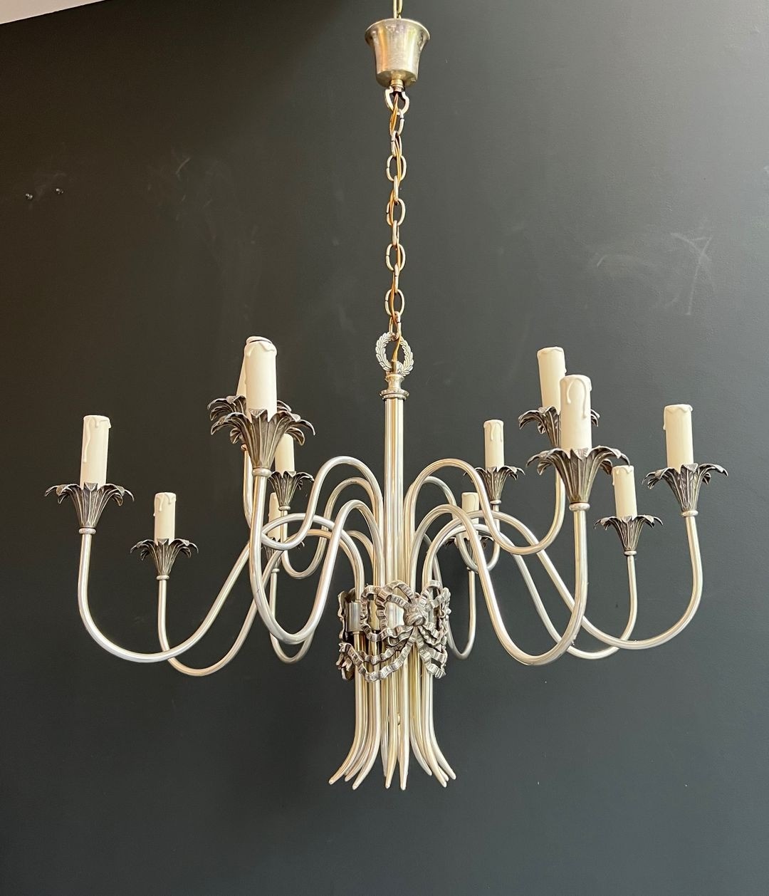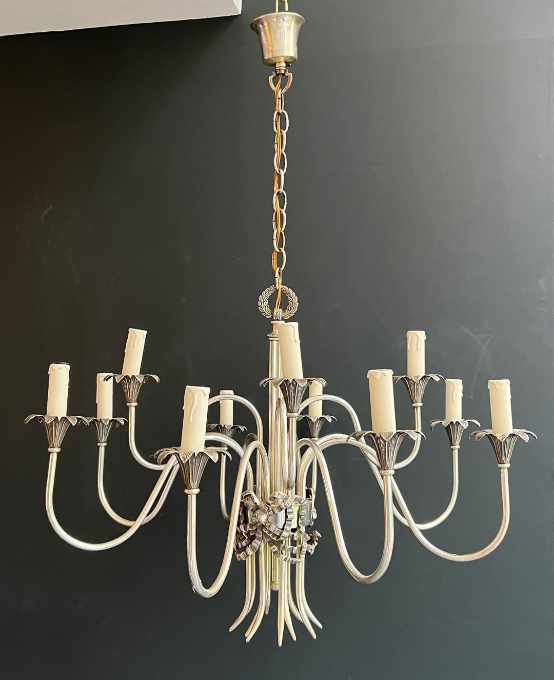 This chandelier presents in excellent condition, the silvered finish retaining its characteristic lustrous sheen with only the natural oxidation appropriate to its age. The generous spread of 82 cm in diameter makes this a commanding fixture for a dining room, library or reception room of significant scale, where the eight lights will cast their cool silver-toned radiance with the quiet authority for which Maison Charles is celebrated. A rare opportunity to acquire a documented piece from one of the great names of Parisian decorative metalwork.