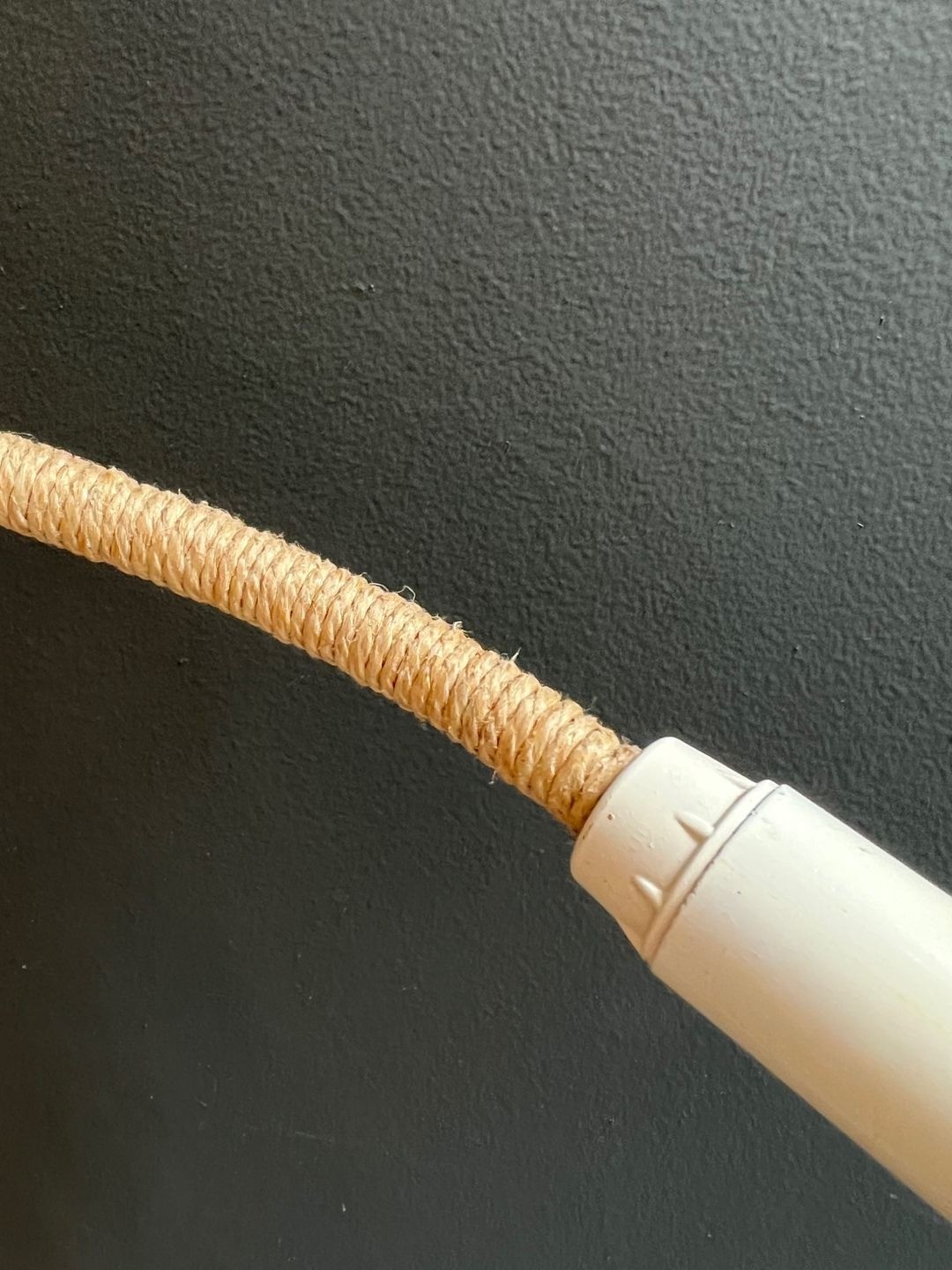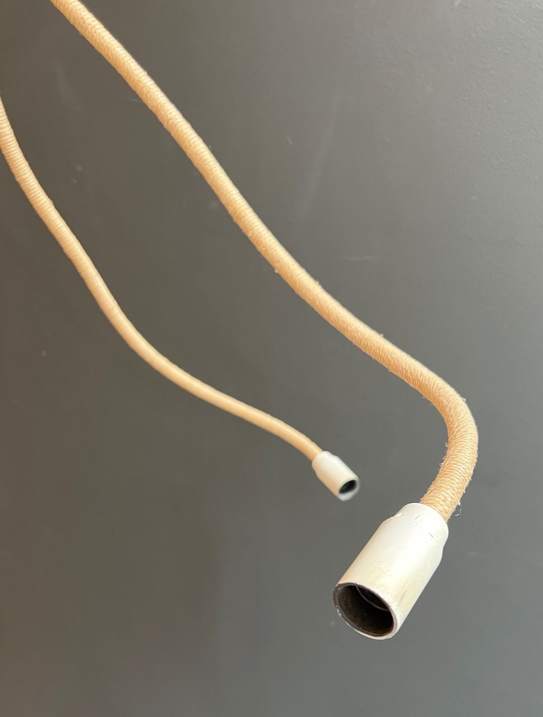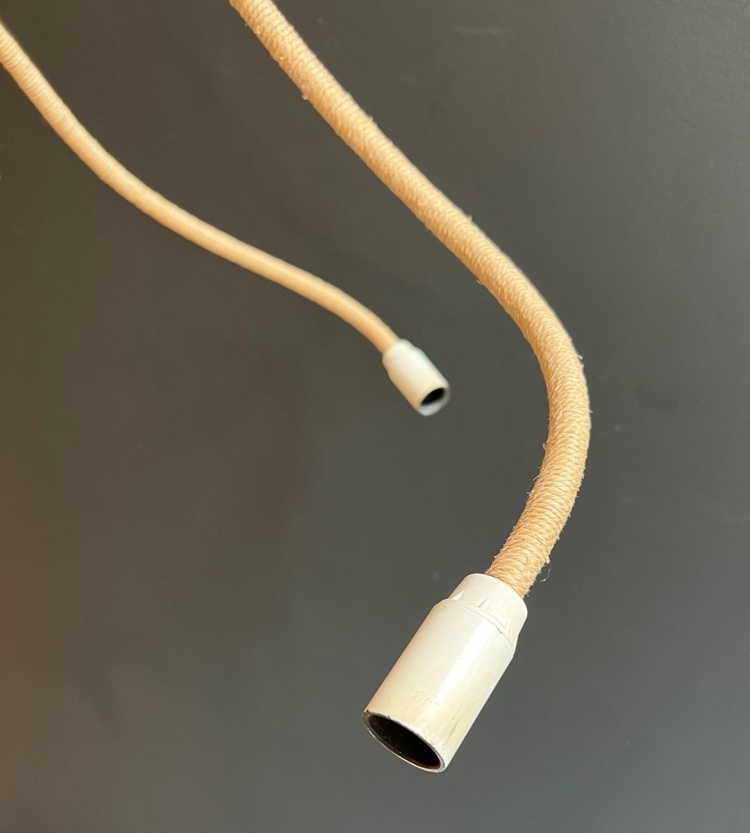 Today the rope chandelier occupies a distinctive position in the market for French mid-century decorative objects: neither as recognisably collectible as the canonical designs of the post-war ateliers, nor as anonymous as a purely functional piece, it offers the collector an object of real presence at a point where its cultural moment is being reassessed with renewed interest. In excellent condition. Width 88 cm, depth 73 cm, height 87 cm.
