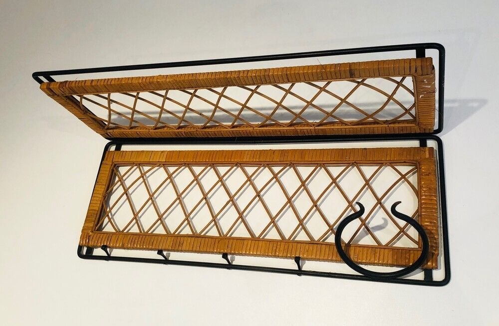 Rattan and Black Lacquered Metal Coat Hanger. French. Circa 1950