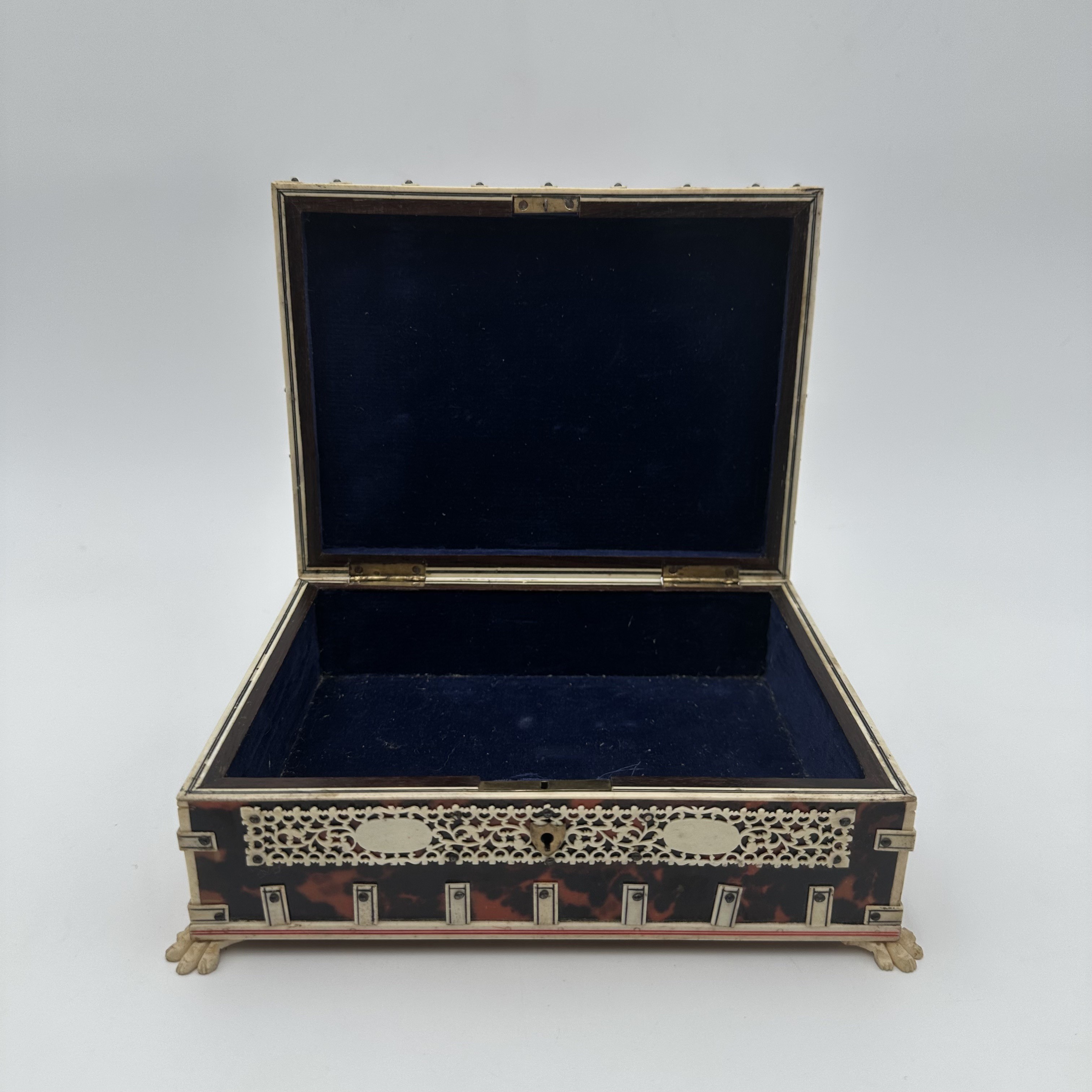 Anglo-Indian Tortoiseshell and Pierced Bone Jewelry Casket, 19th Century