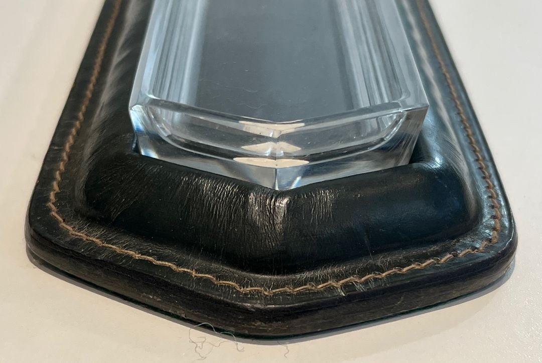 Jacques Adnet made the combination of dark green or black leather with brass and glass his most distinctive signature. His desk accessories, produced for a discerning clientele of Parisian professionals, collectors, and grands bourgeois, became icons of French mid-century interior decoration. The pen tray, the letter rack, the blotter, the ink stand — each element of the desk set was treated with the same rigorous attention to material and proportion, creating ensembles that were at once supremely functional and deeply beautiful. This pen tray, whether from Adnet’s own atelier or from a skilled workshop working in his tradition, fully embodies those values.