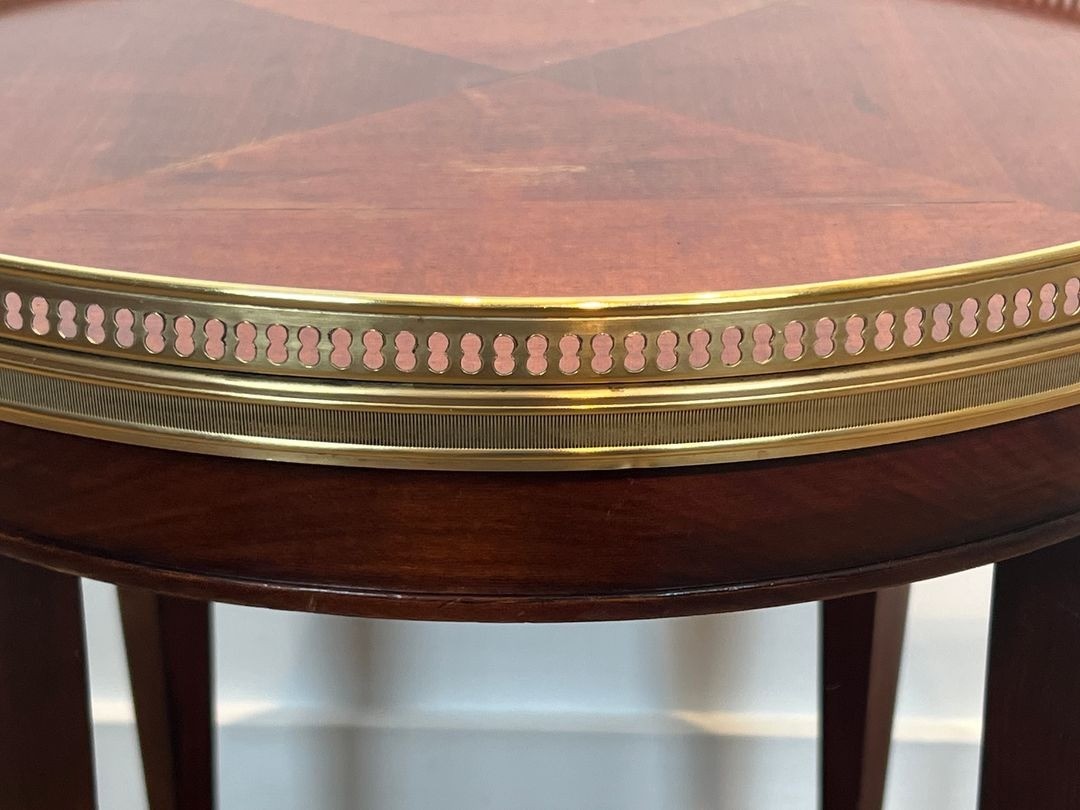 The bouillotte table takes its name from the popular French card game of the same name, around which such tables were originally grouped. By the mid-twentieth century, the form had been absorbed into the vocabulary of French luxury furnishing, produced by skilled Parisian ébénistes in the neoclassical tradition. This pair, with its well-matched timbers and consistent brass-work, is a testament to the high standard of French cabinetmaking during the interwar period.