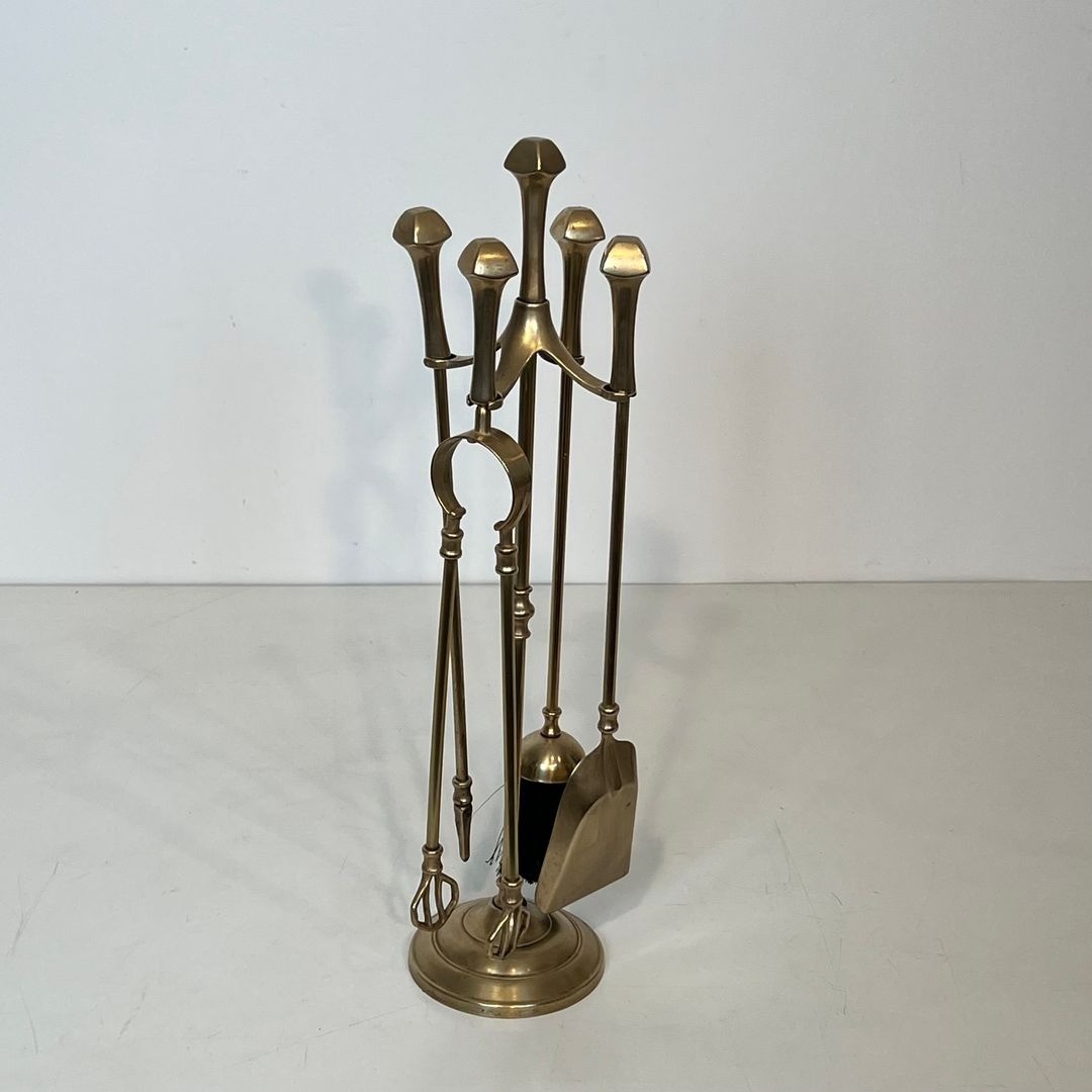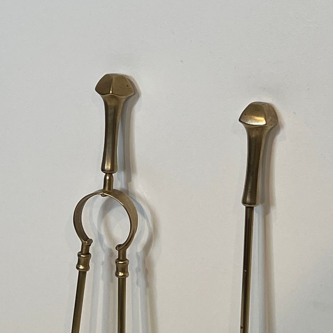 The tripod form — one of the most enduring structural motifs in Western decorative art, reaching from the bronze vessels of ancient Greece through the candelabra of the Roman Empire to the guéridons and stands of the Directoire and Empire periods — is here employed with characteristic modesty and discipline. The Parisian ateliers of the 1960s and 1970s returned frequently to this vocabulary, producing companion sets, lighting pieces, and occasional tables in brass that drew on the neoclassical repertoire with the fluency and confidence of long tradition.