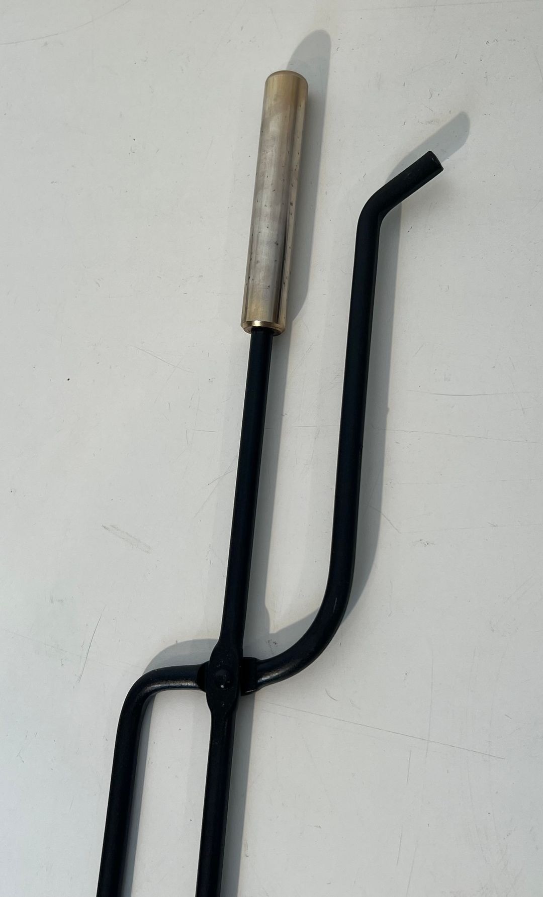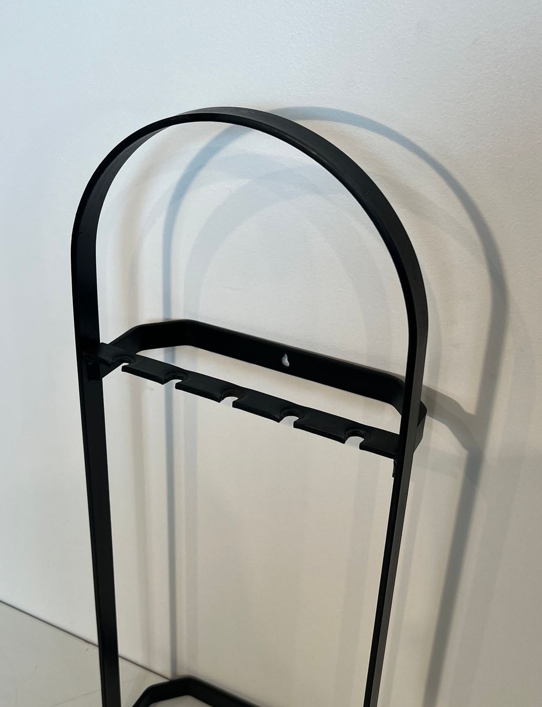 The cage structure is itself a design statement, transforming the conventional companion stand into an architecturally conceived object. The regular rhythm of the bars and the precise right-angled geometry of the frame reflect the systematic approach to form that characterised French industrial design of the 1960s and 1970s, when designers applied grid-based thinking to even the most traditional categories of domestic furnishing.