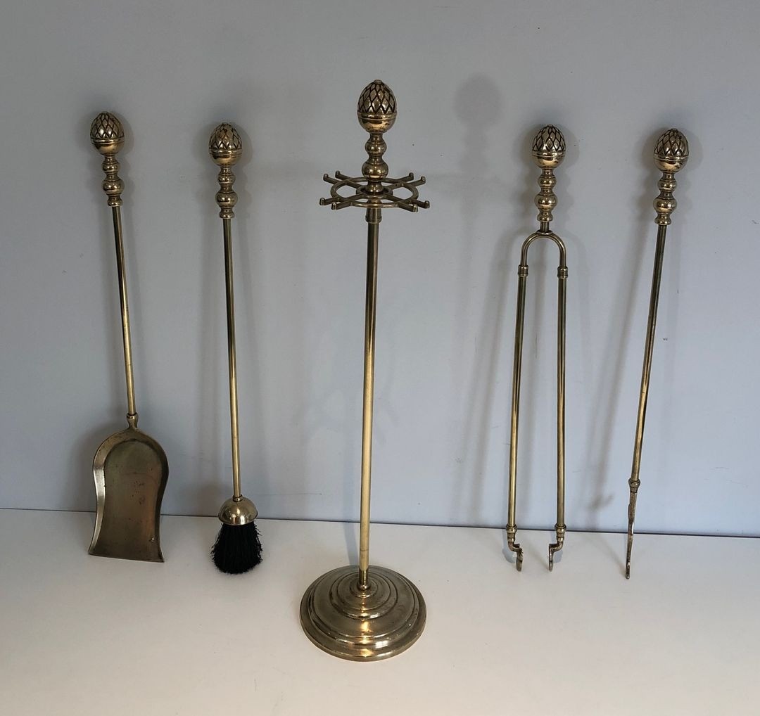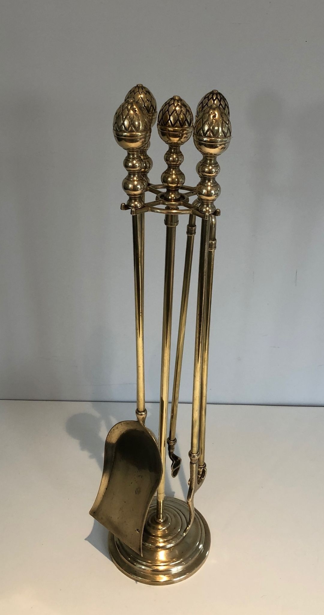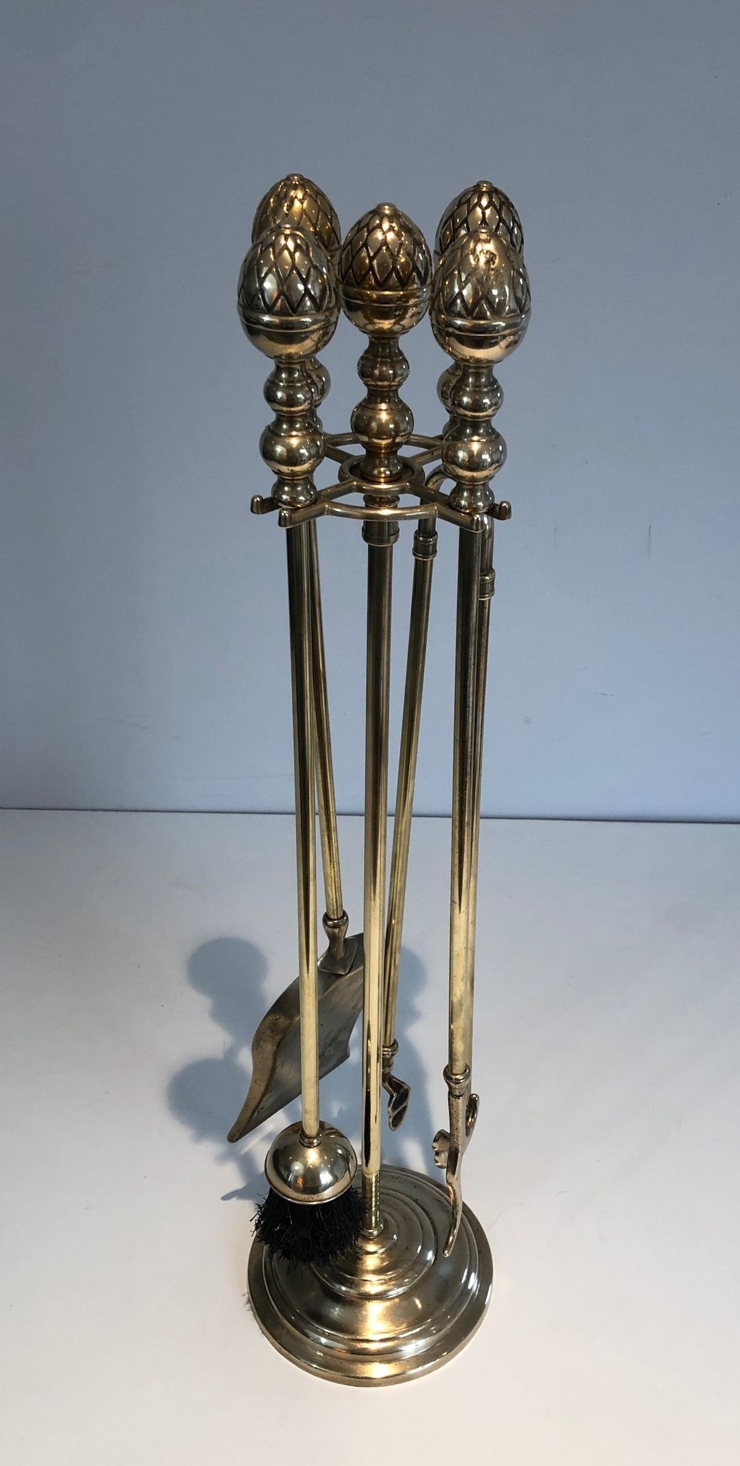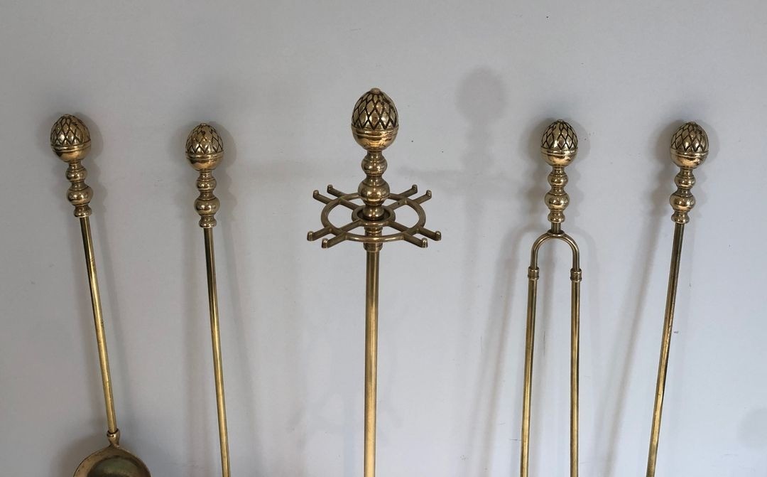 Neoclassical Brass Fireplace Companion Set with Pine Cone Finials, Baguès Style