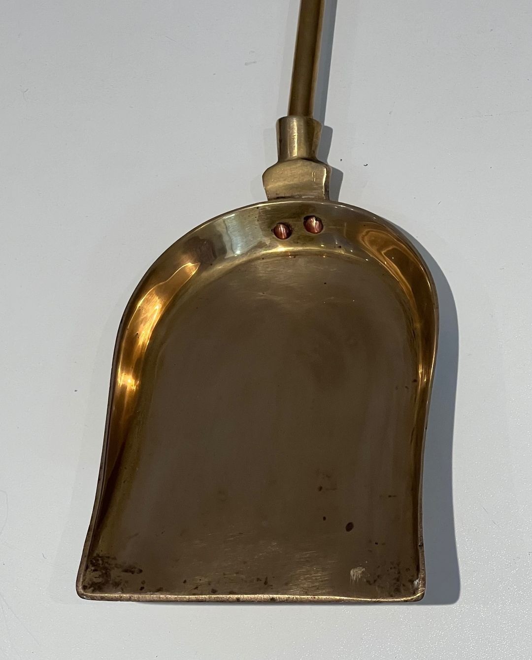 The piece is entirely fabricated in polished brass, a material chosen for its warm golden lustre and its long association with fine French decorative metalwork. The patina is even and consistent throughout, displaying the characteristic amber-gold tone of well-seasoned polished brass.