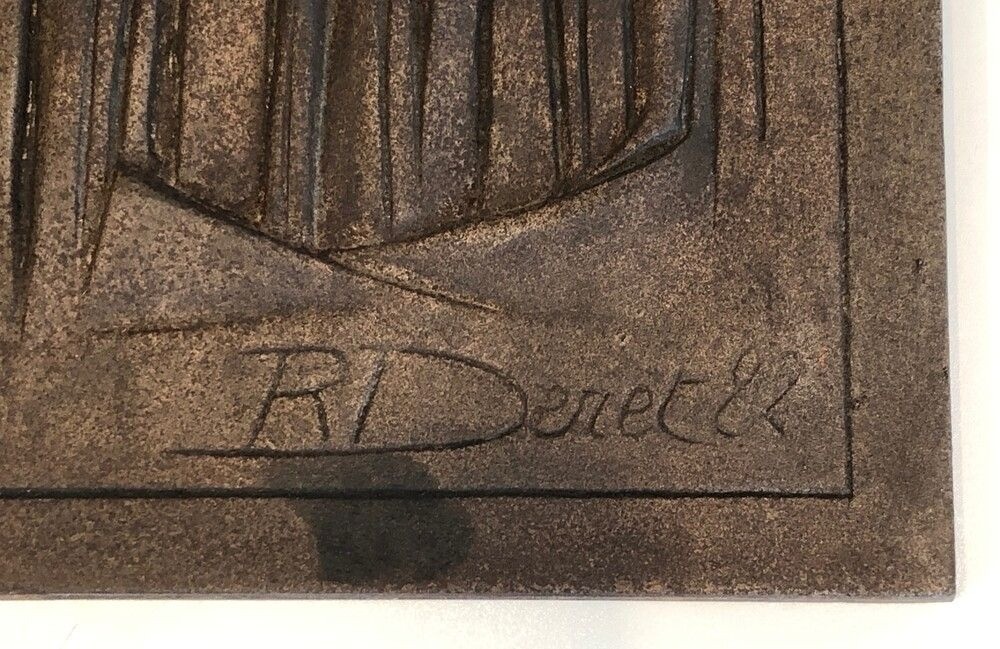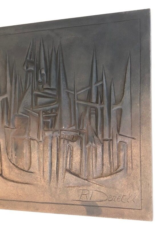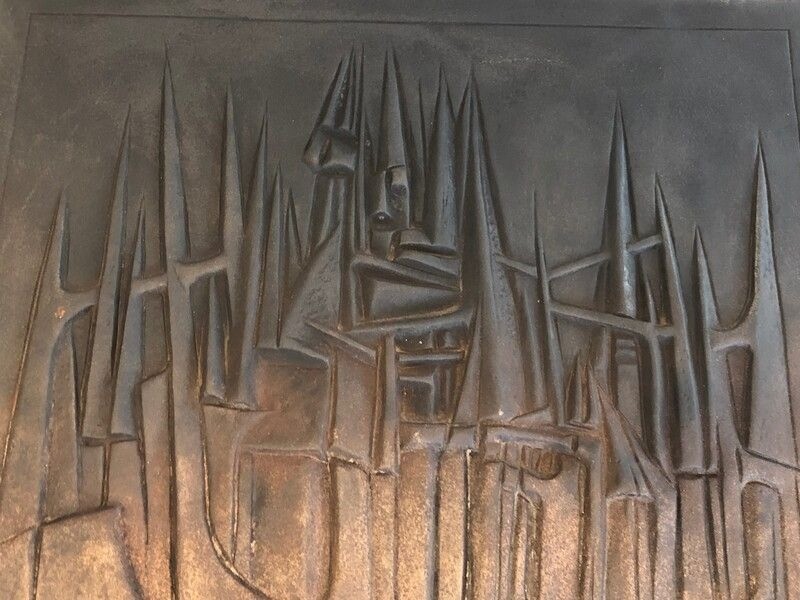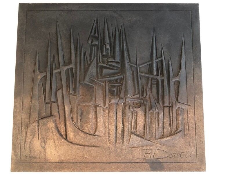 Modernist Cast Iron Fireback by R. Deret, Cast by Stern Foundry, 1982