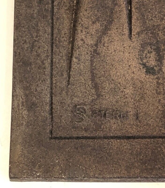 This distinguished fireback, dated 1982 and bearing the signatures of both its designer R. Deret and the Stern foundry responsible for its casting, is firmly placed within that tradition. The piece represents a mode of production closely parallel to that of the sculptural edition: the artist provides the design, the foundry translates it into cast iron with the technical mastery of the caster’s art, and the finished piece bears the authentication of both parties. The Stern foundry’s name is a mark of quality that speaks to the seriousness of the enterprise.