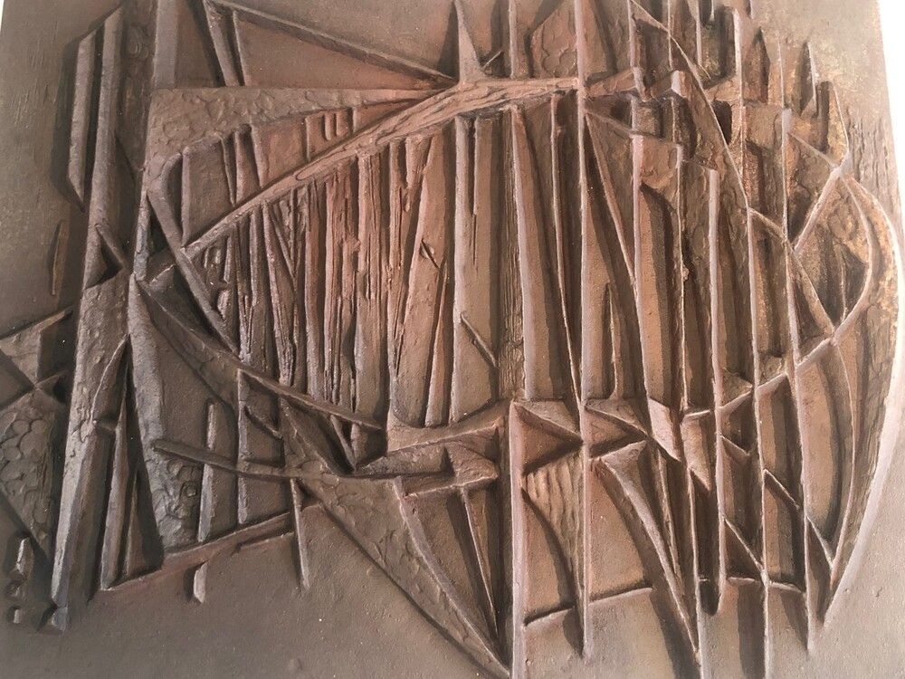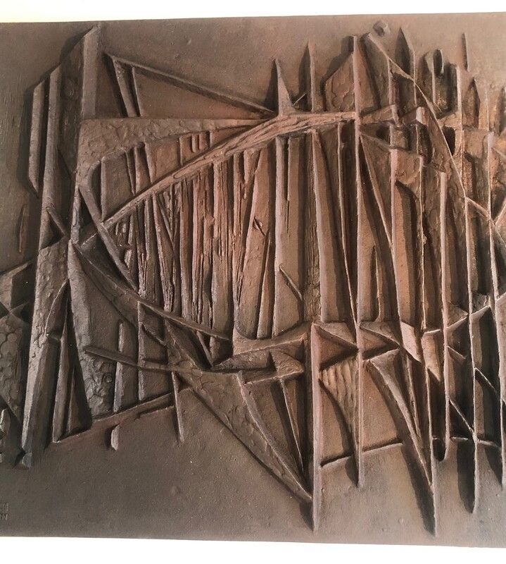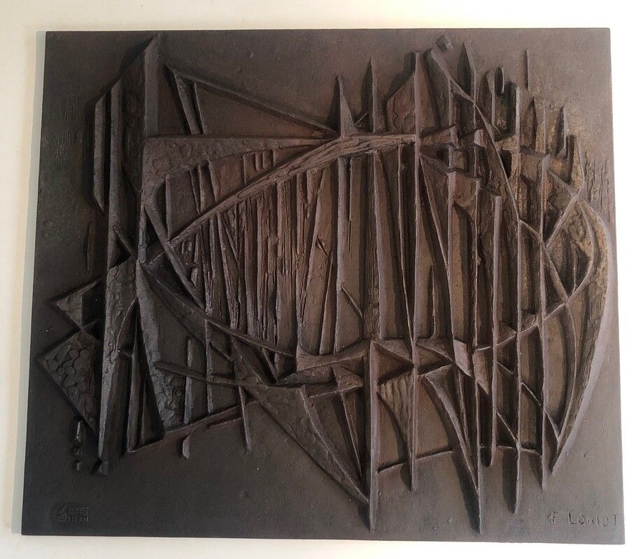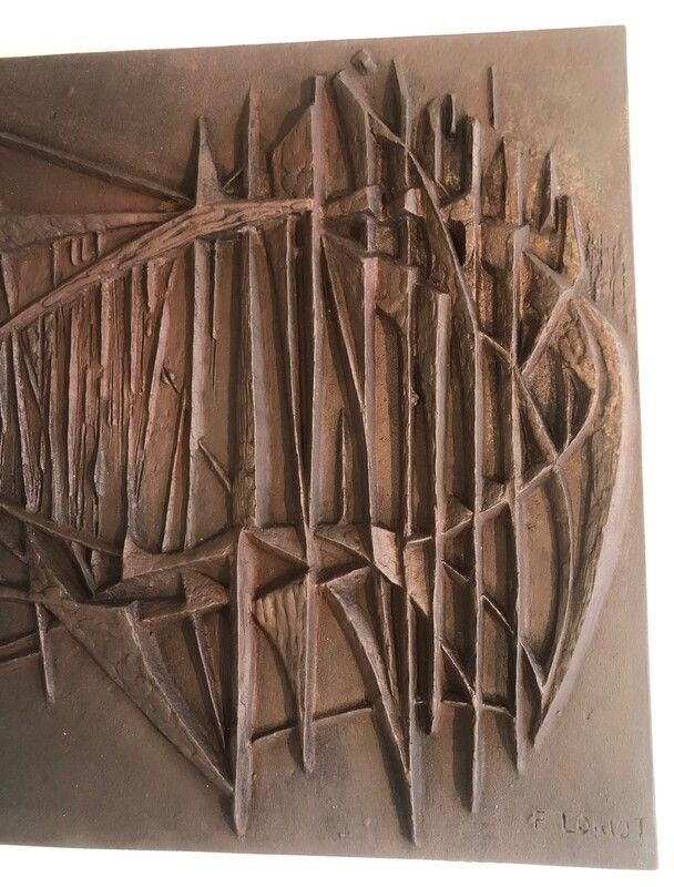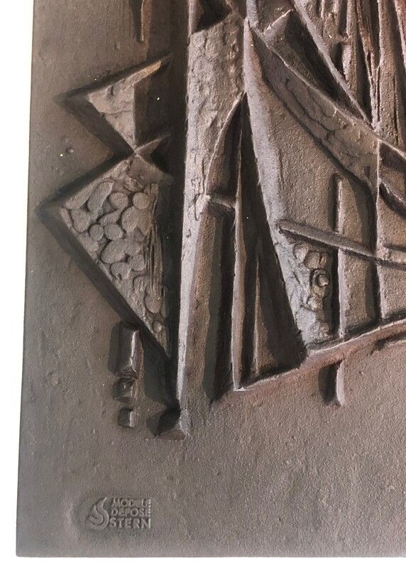 Modernist Cast Iron Fireback. Signed F. Loriot. French. Circa 1970