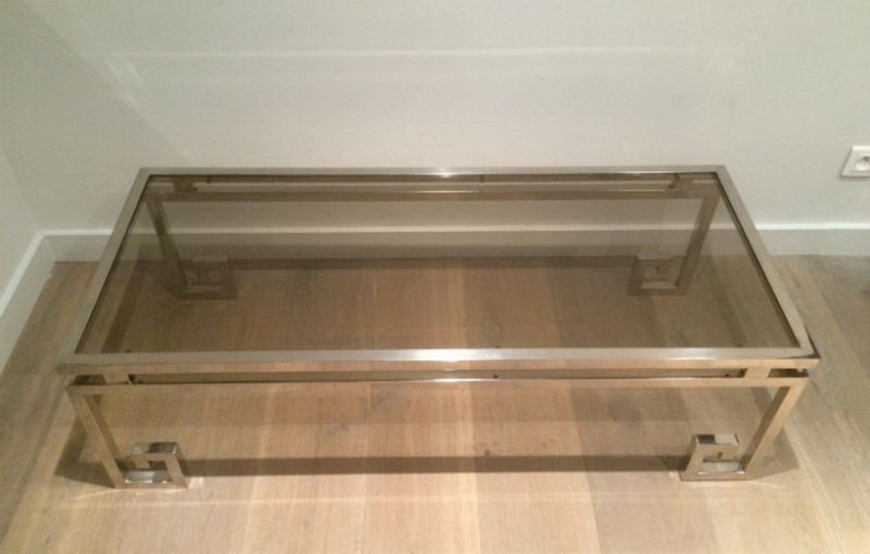 This chrome coffee table testifies to the mastery of polished metal that characterises French decoration in the 1970s. The chrome structure, finely treated, catches the light in delicate plays and gives the piece a presence that is both sober and assertive. The quality of execution fully justifies the qualifier "very fine".
