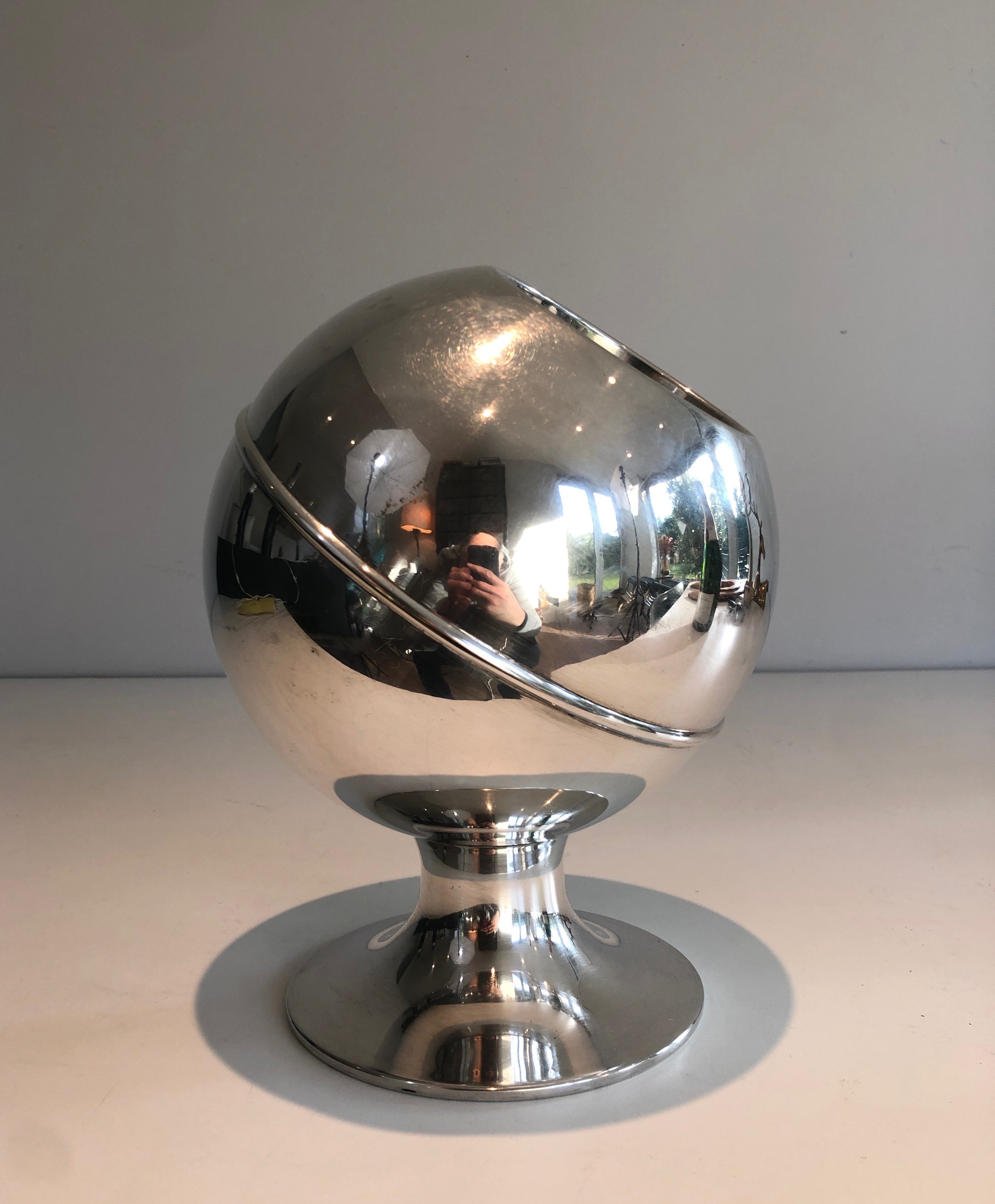 A refined and elegant example of 1970s French modernist table design, this chrome champagne bucket would bring the glamour of the decade to any bar cart or table setting. Its timeless minimalism and superior chrome finish ensure it integrates as naturally into contemporary interiors as it did into those of fashionable Paris fifty years ago.