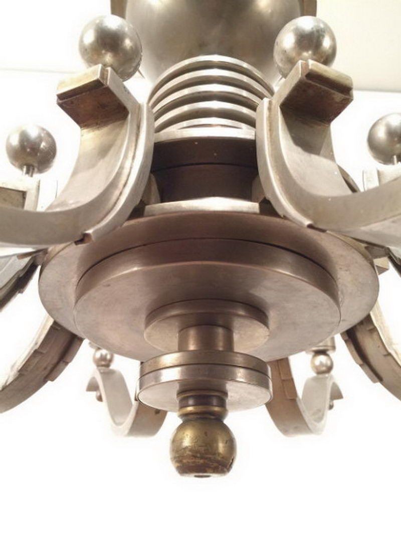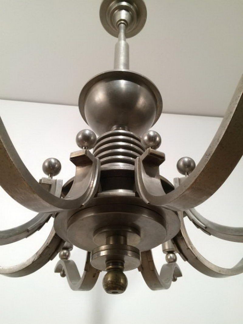 Important Art Déco silvered bronze chandelier, French work from the 1930s.