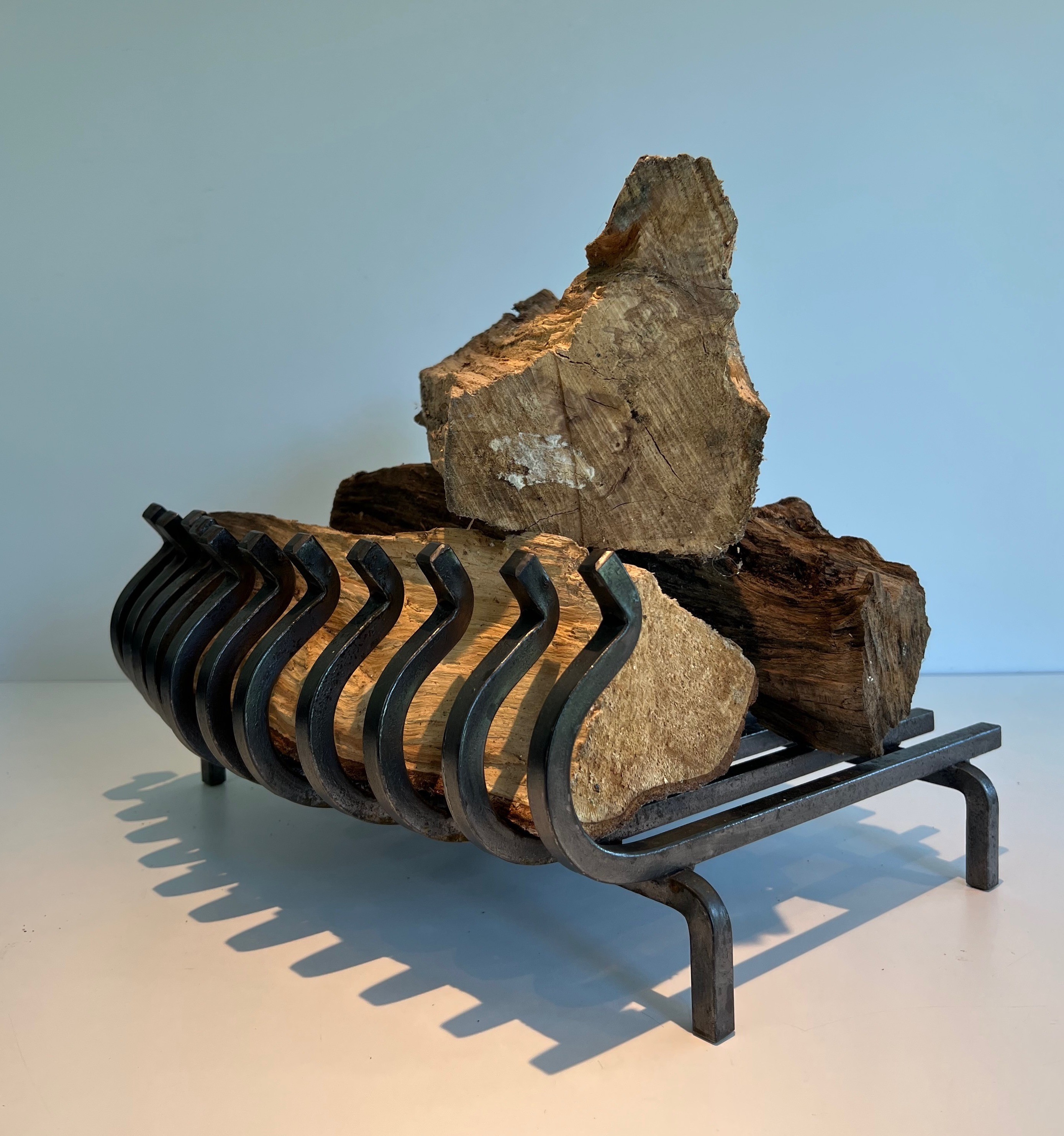The log holder as a domestic object became a staple of the well-appointed French interior in the postwar period, as the open fireplace — long displaced by central heating in urban apartments but retained with affection in country houses and traditional homes — was rediscovered as a source of pleasure and warmth. Quality wrought iron log holders of this period were produced by the same specialist metalwork workshops responsible for andirons and fireplace tools, the best examples combining strength with a refined, considered aesthetic.