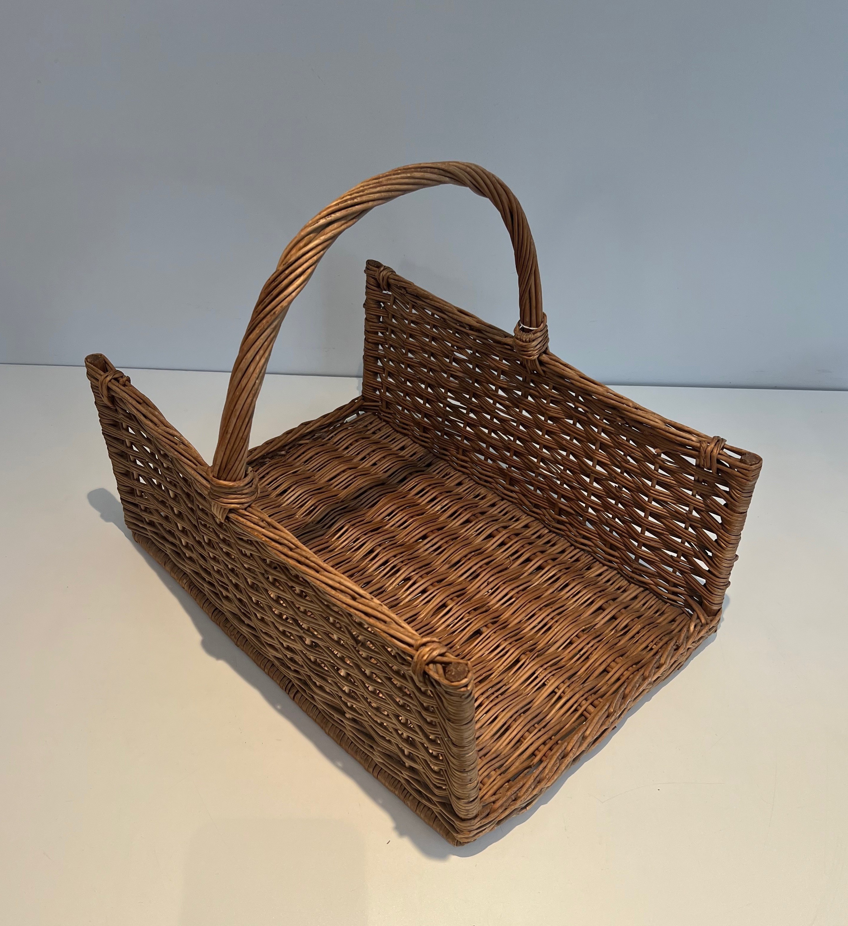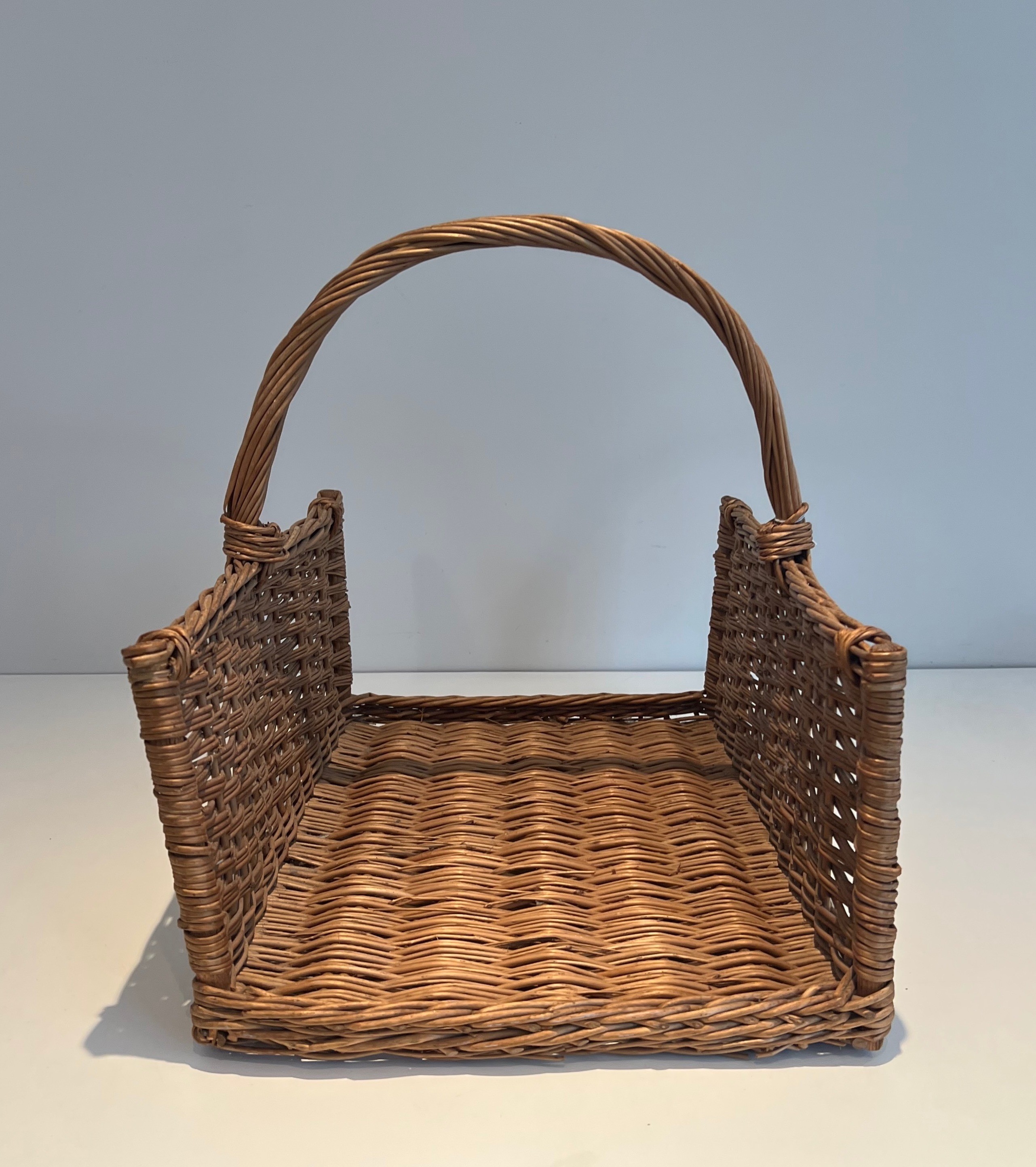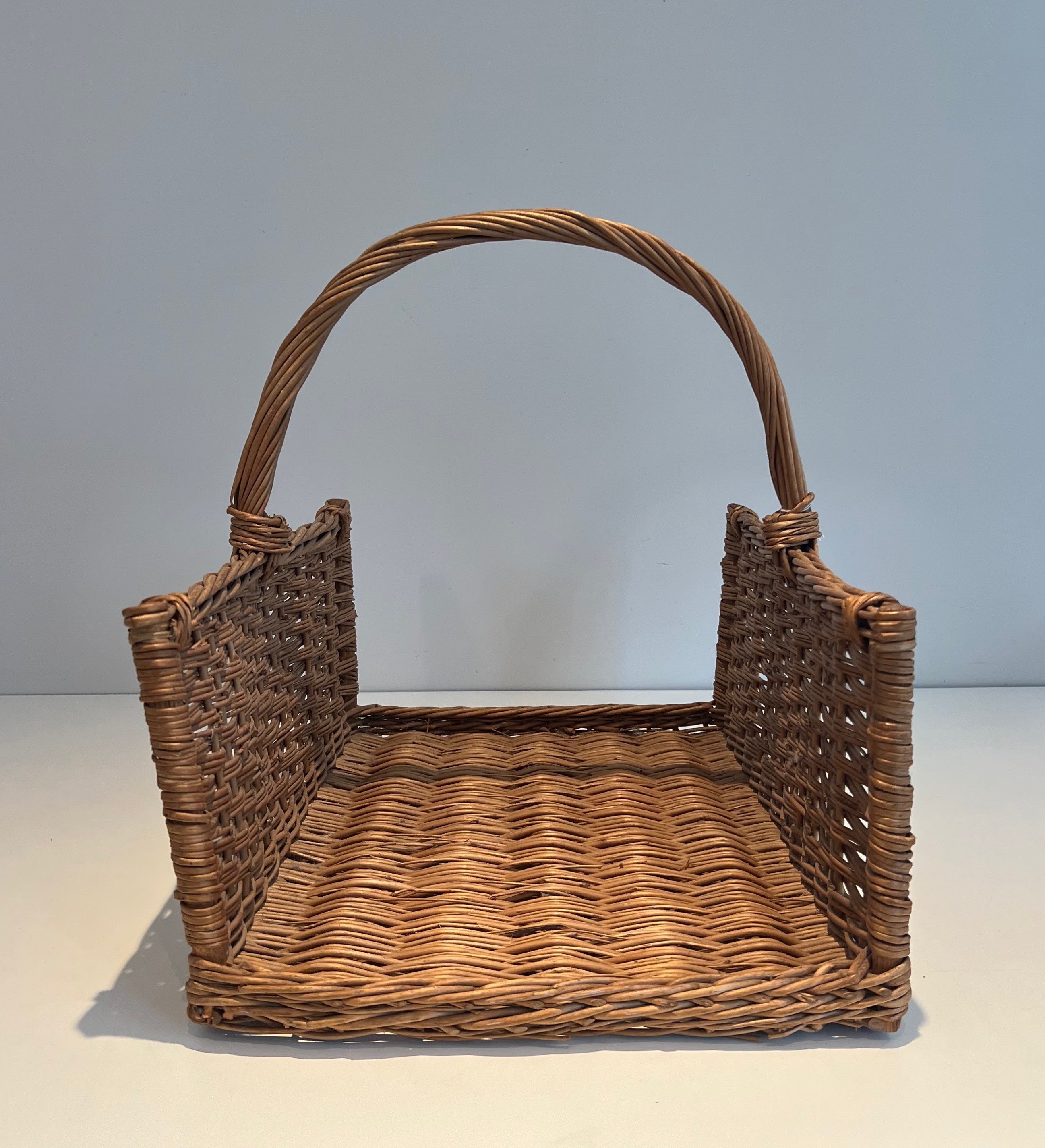The use of natural materials in household accessories flourished in France during the late 1960s and 1970s, driven by a renewed appreciation for artisanal craft and organic aesthetics. Rattan in particular enjoyed a remarkable revival in this period, used by French designers and craftsmen for furniture, lighting, and accessories combining practicality with the warm, textured beauty of the natural material. This log holder exemplifies that trend, its utilitarian purpose elevated by the quality of its construction and the inherent beauty of the rattan.