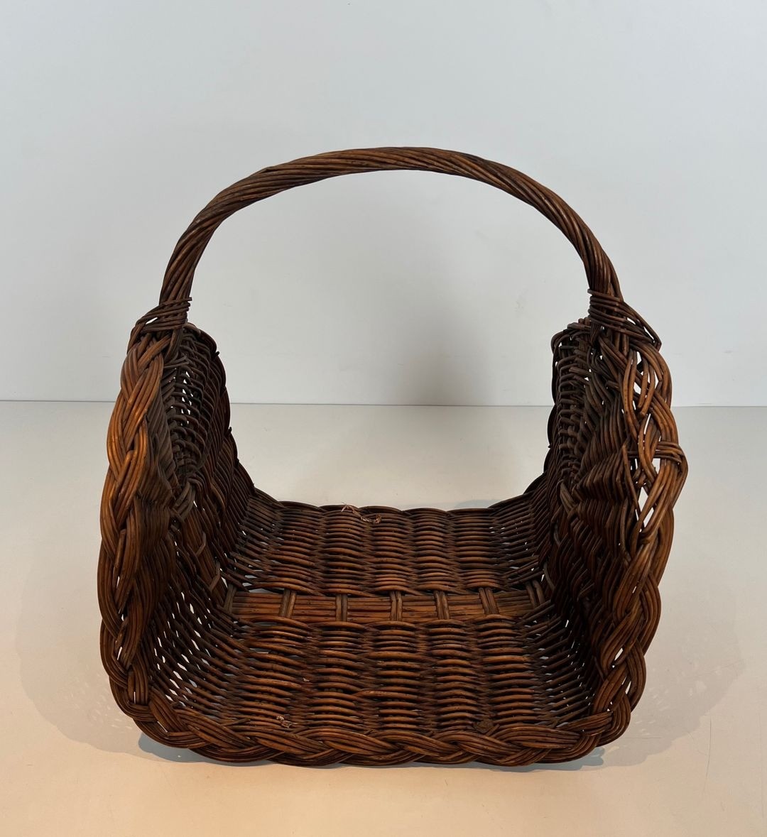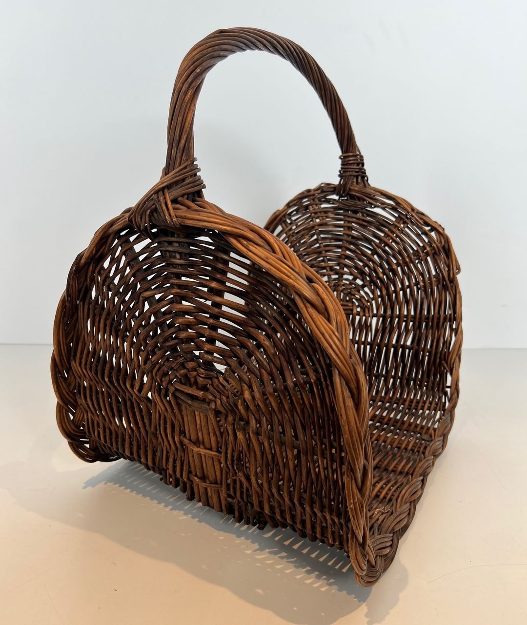 Fully functional and in good vintage condition, this basket would be at home beside a fireplace in any register of interior — the traditional country house, the bourgeois apartment, or the contemporary home that values authentic craft over reproduction.
