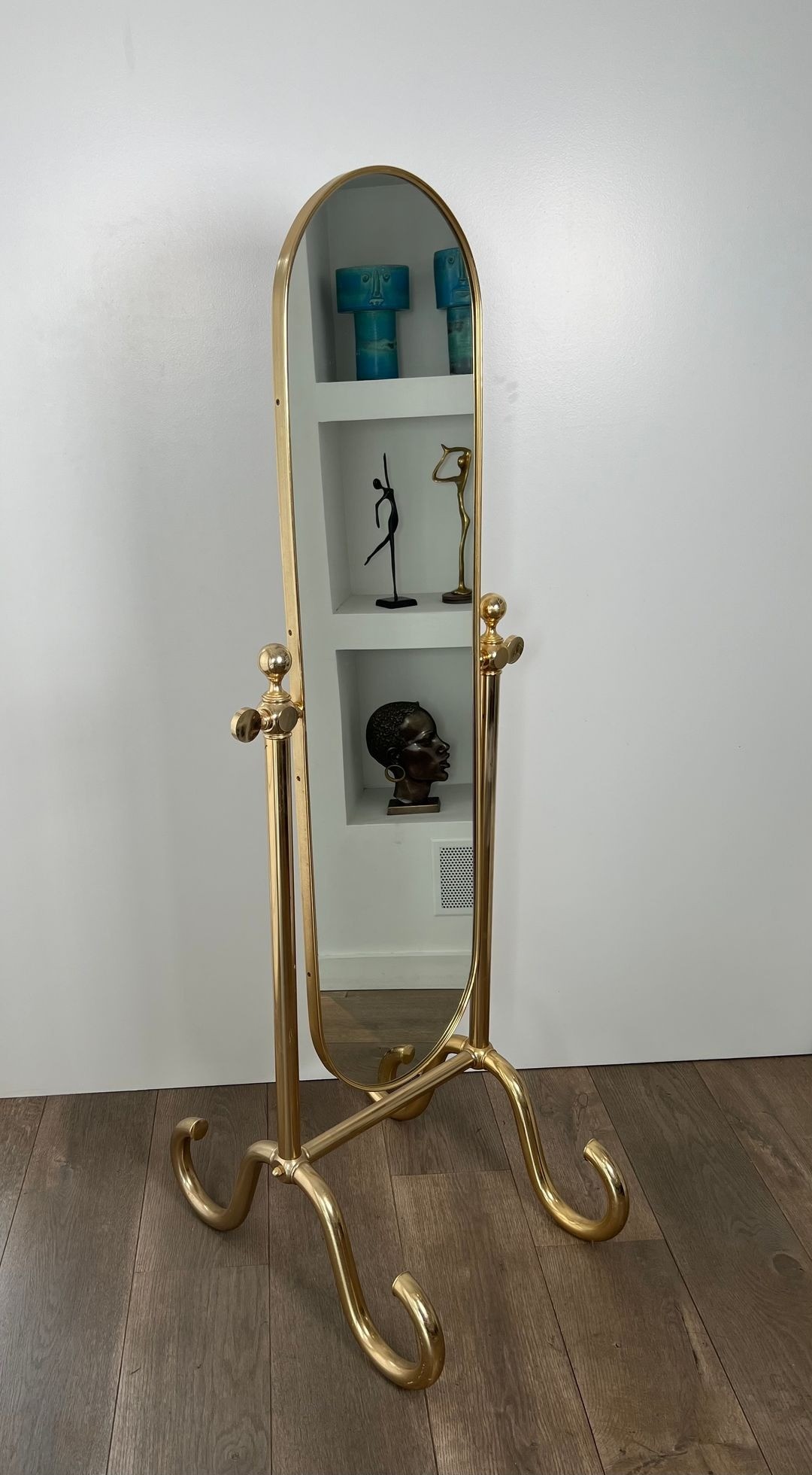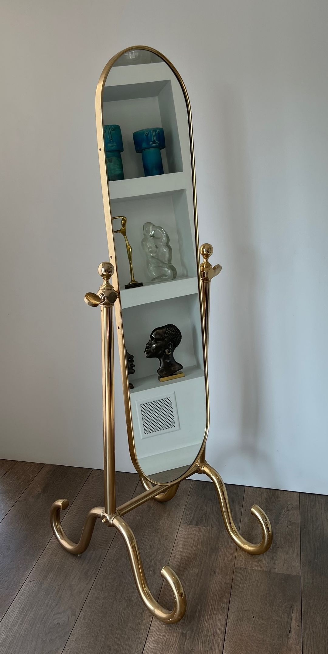 Swinging Full-Length Brass Psyché Mirror — French Work, Circa 1970