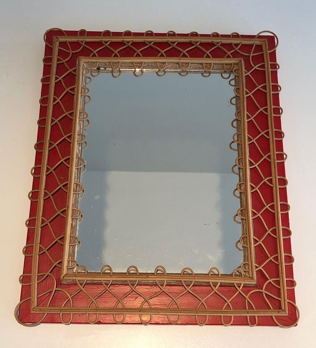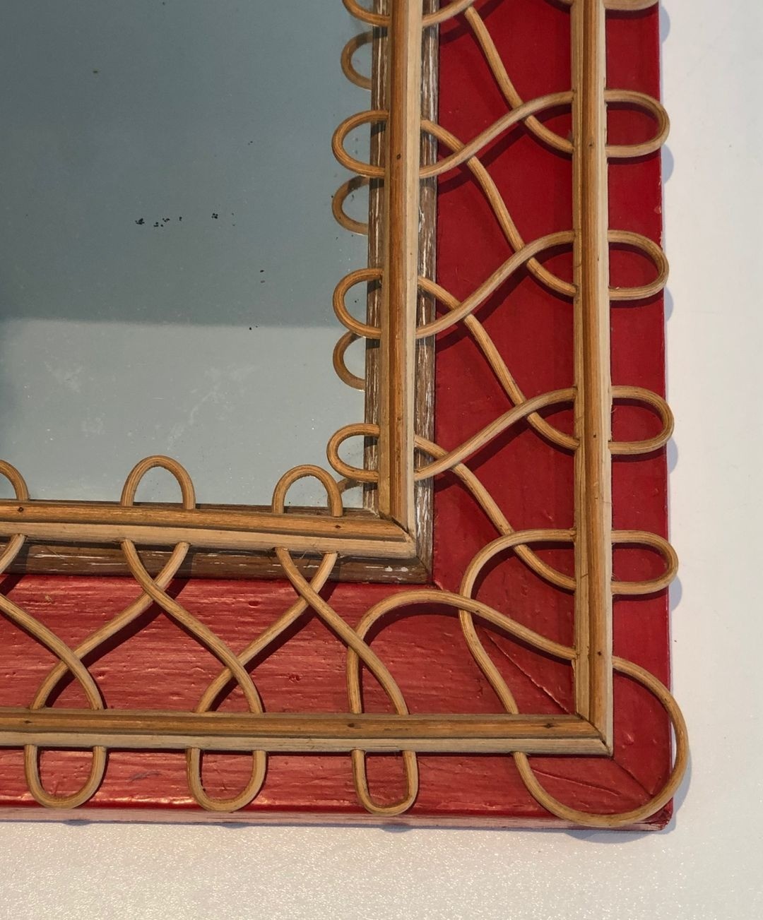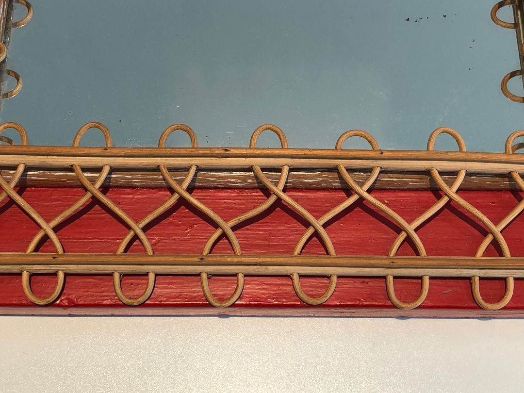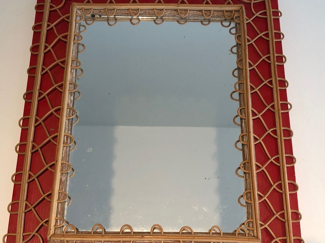 Rattan Trellis Mirror on Crimson Background — French Work, Circa 1940