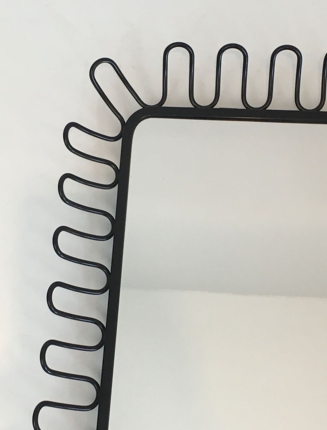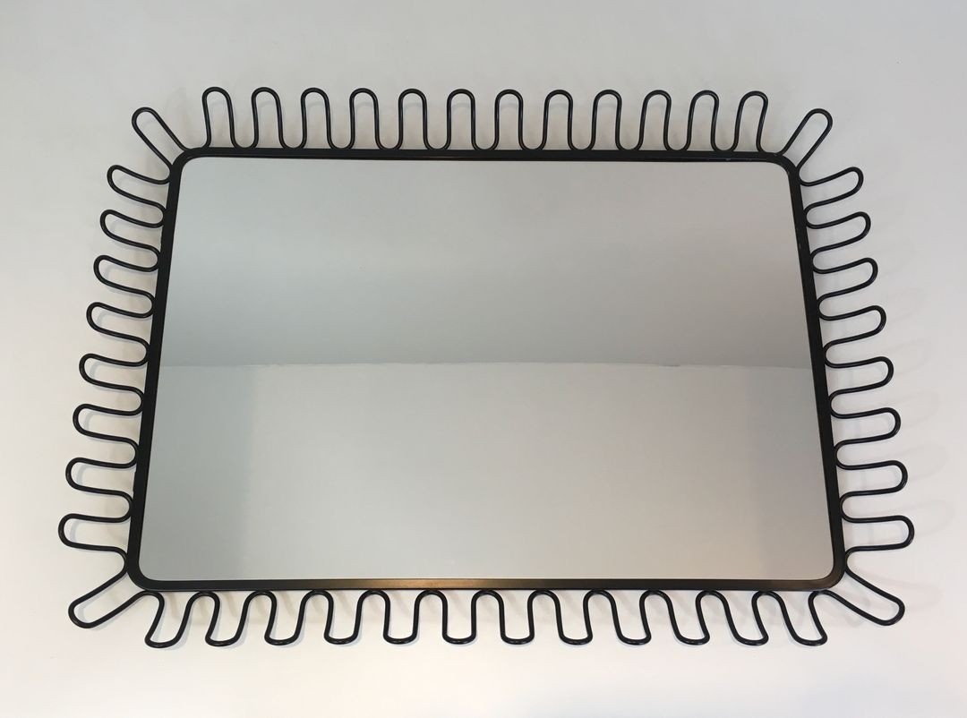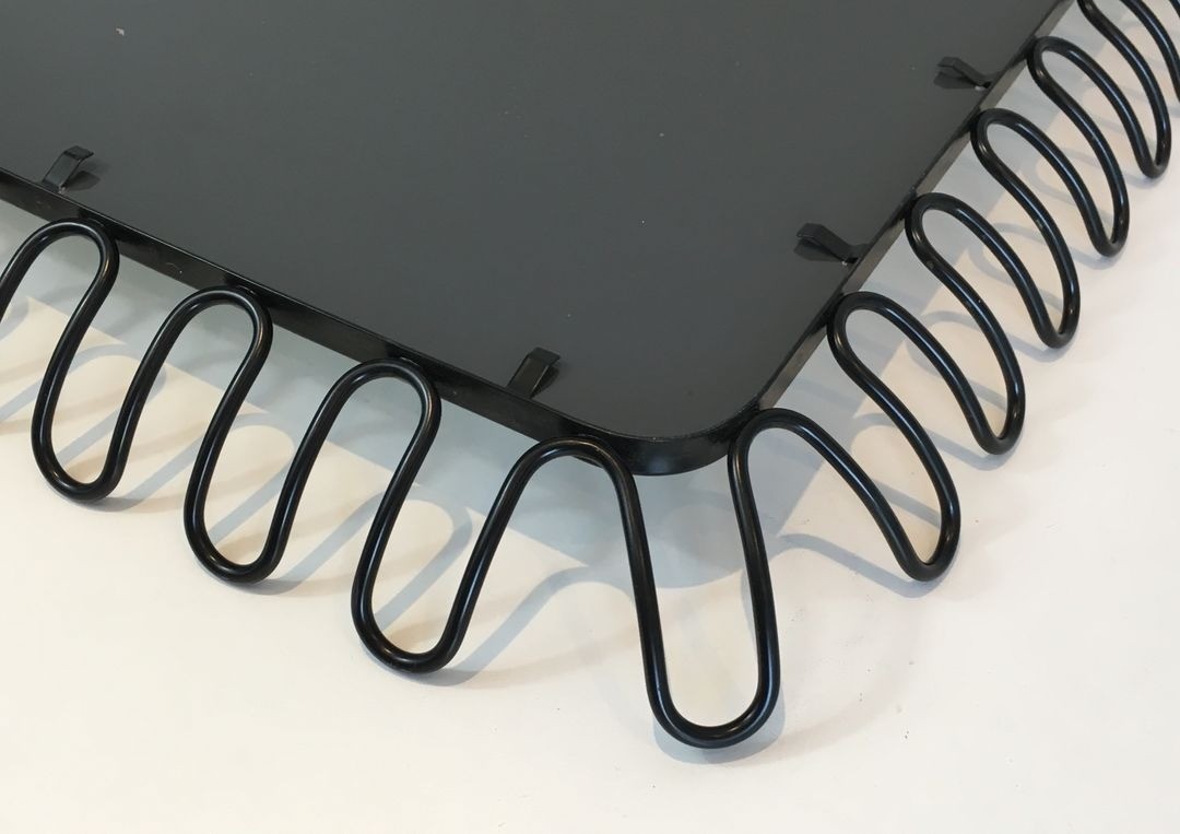 This handsome rectangular mirror exemplifies the enduring appeal of the decorative language associated with Jean Royère, the celebrated French designer whose mid-century output brought a uniquely fantastical sensibility to the canon of modern furniture and objects. The frame, wrought from black lacquered metal, is encircled by a continuous border of tightly wound coiled wire — the hallmark feature directly associated with Royère's celebrated aesthetic and widely admired by French craftsmen working in his wake.