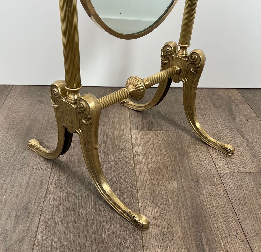 Neoclassical Brass Psyché Mirror in the Style of Maison Jansen — French Work, Circa 1970