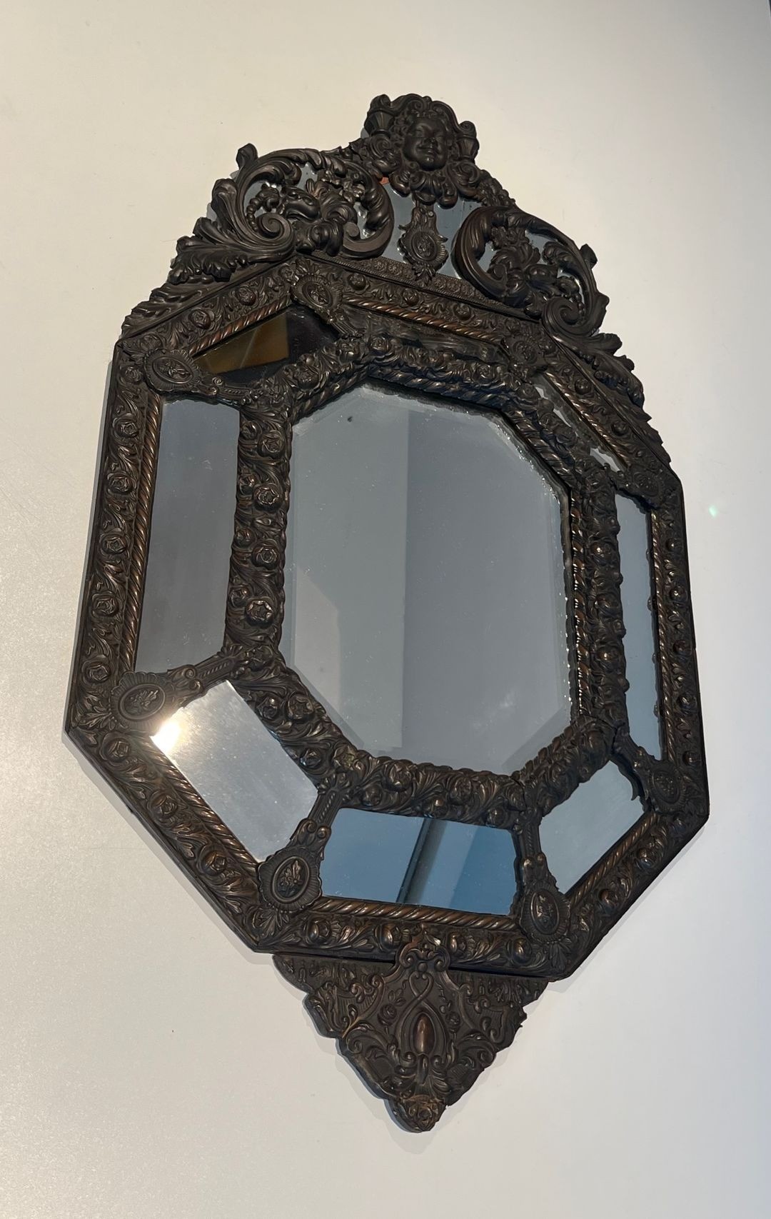 Repoussé Copper Mirror with Parecloses, Floral Garlands and Sun King Effigy — Napoleon III, Circa 1880