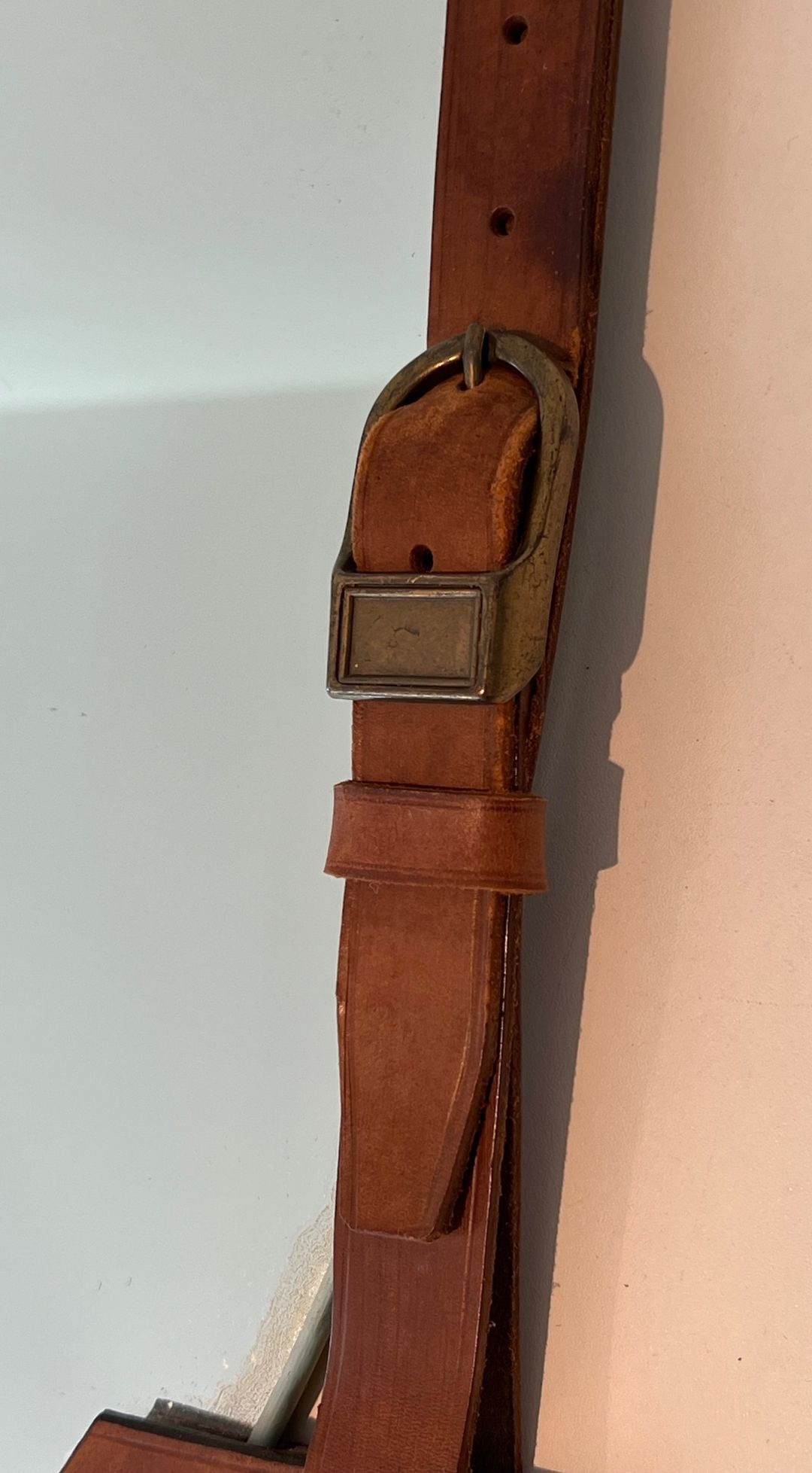 Leather and Brass Mirror Attributed to Jacques Adnet — French Work, Circa 1950