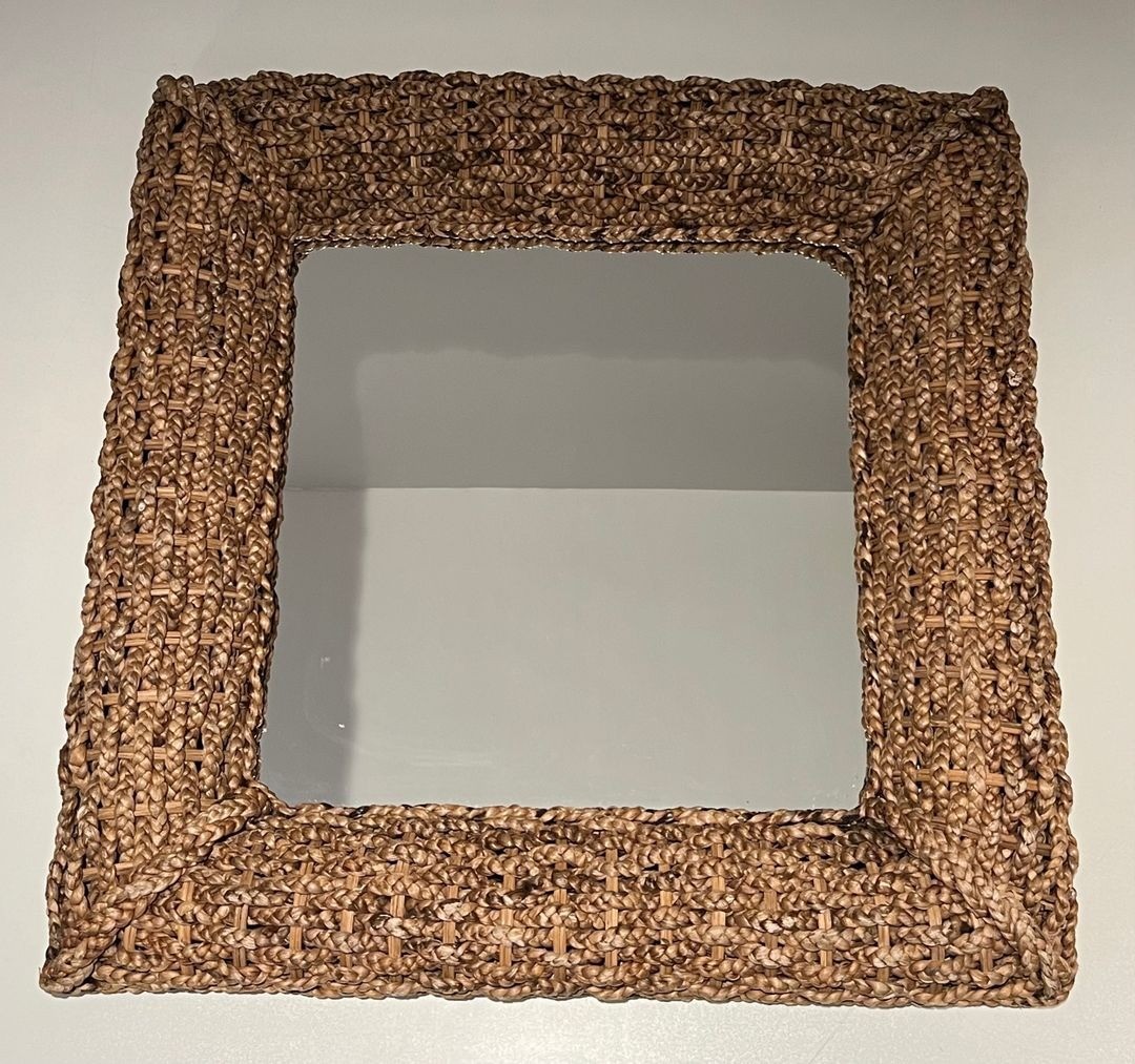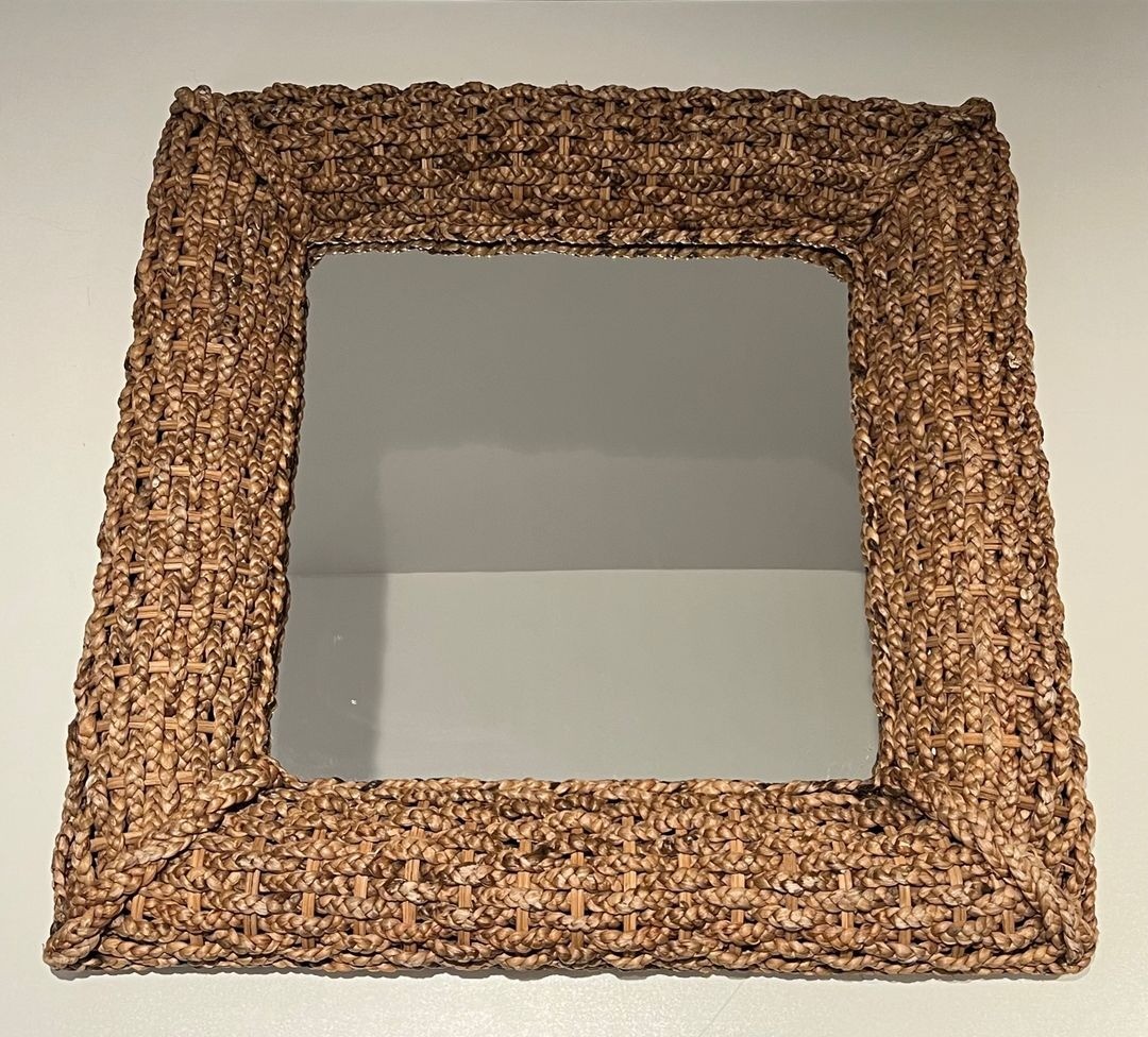 Square Woven Rope Mirror Attributed to Audoux-Minet