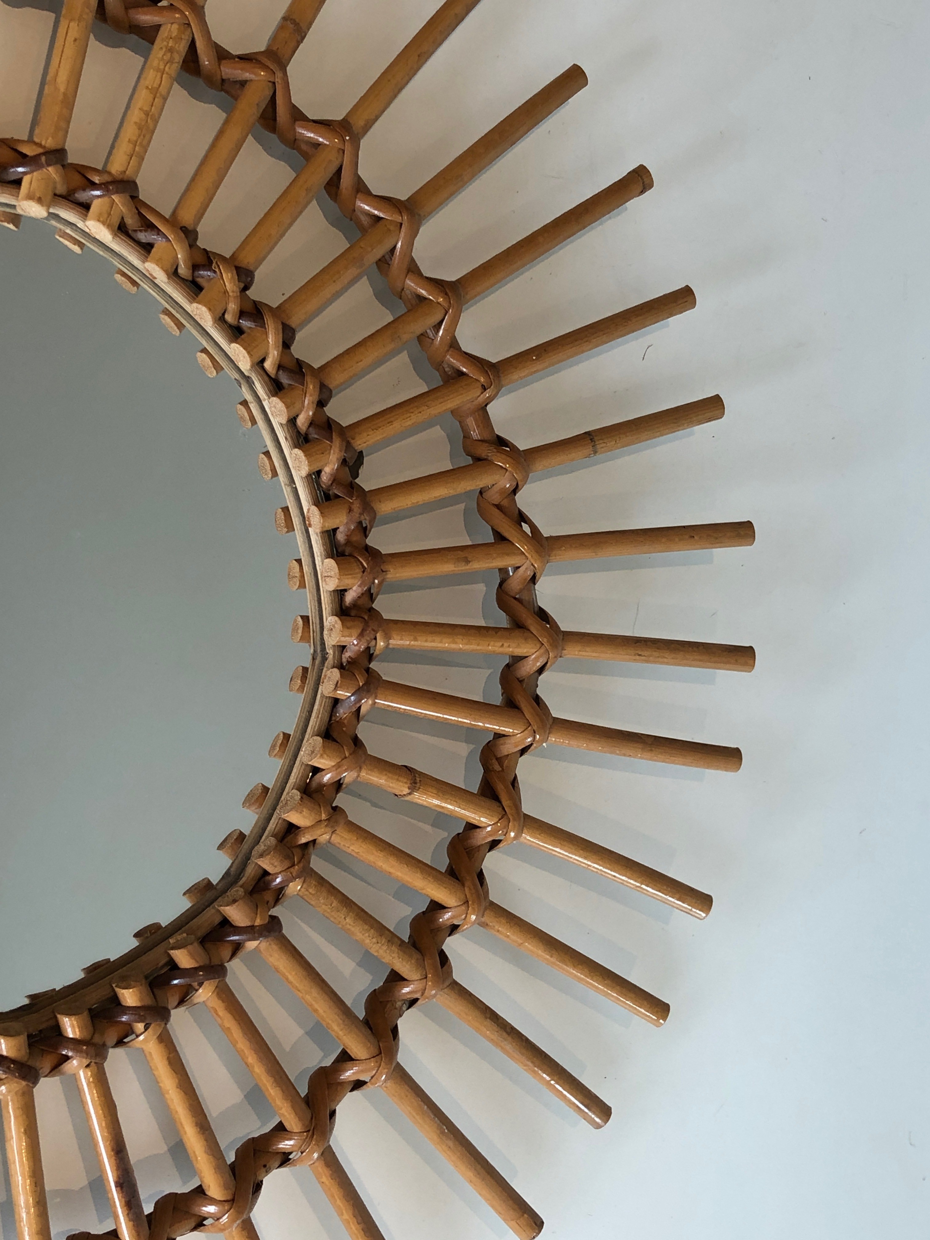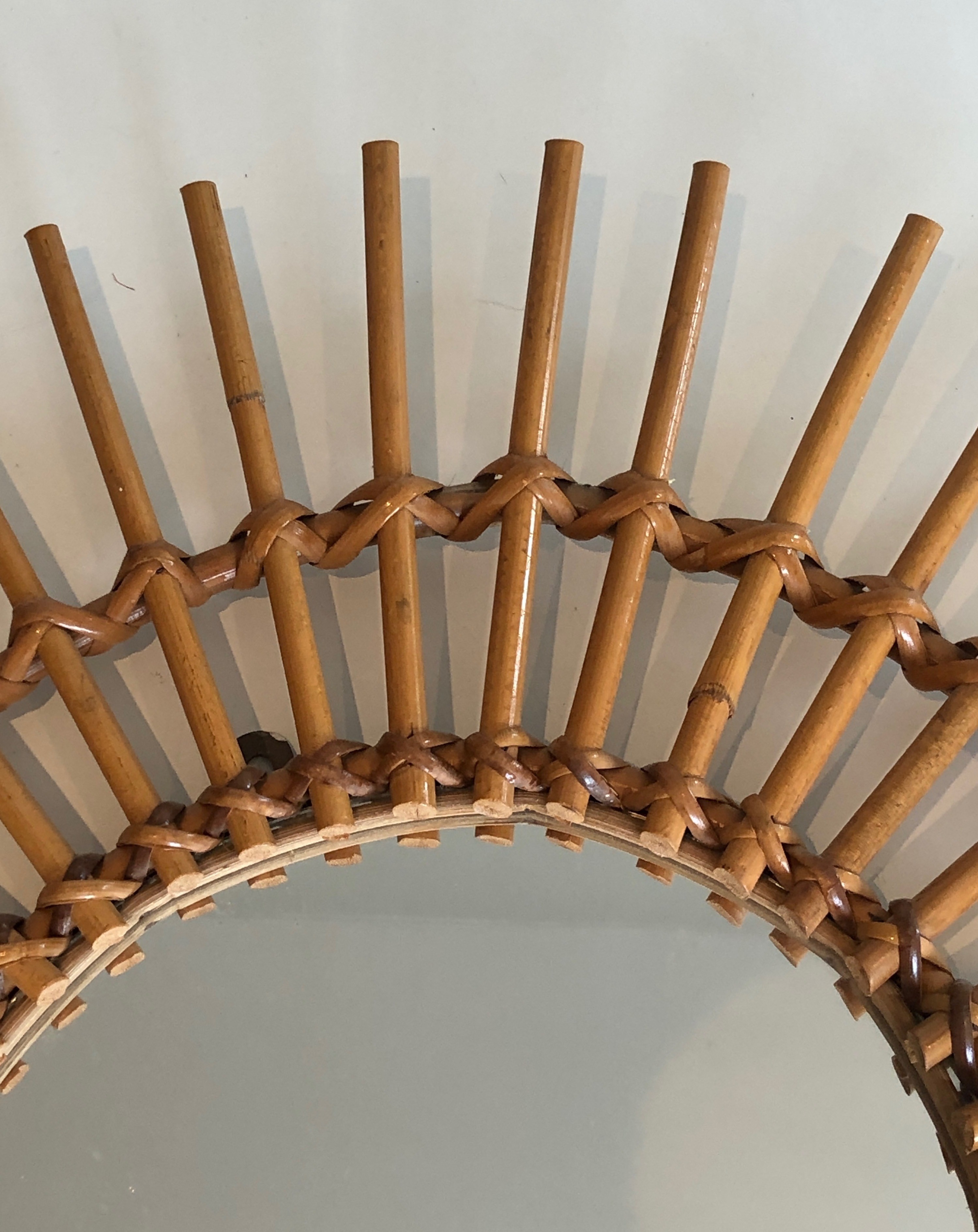 Rattan and cane experienced a remarkable surge in popularity in France throughout the 1960s and 1970s, as decorators and designers turned to organic materials as a counterpoint to the chrome and synthetic surfaces of high modernism. Mirrors in rattan and woven cane became one of the most popular domestic accessories of the decade, embraced by French decorators who admired their warmth, informality, and ability to bring natural texture to any interior. The finest examples — often produced by specialist artisan workshops in the southwest of France or in the coastal towns of the Midi — were crafted with considerable care, the rattan frames woven, bound, and finished with real artisanal precision.