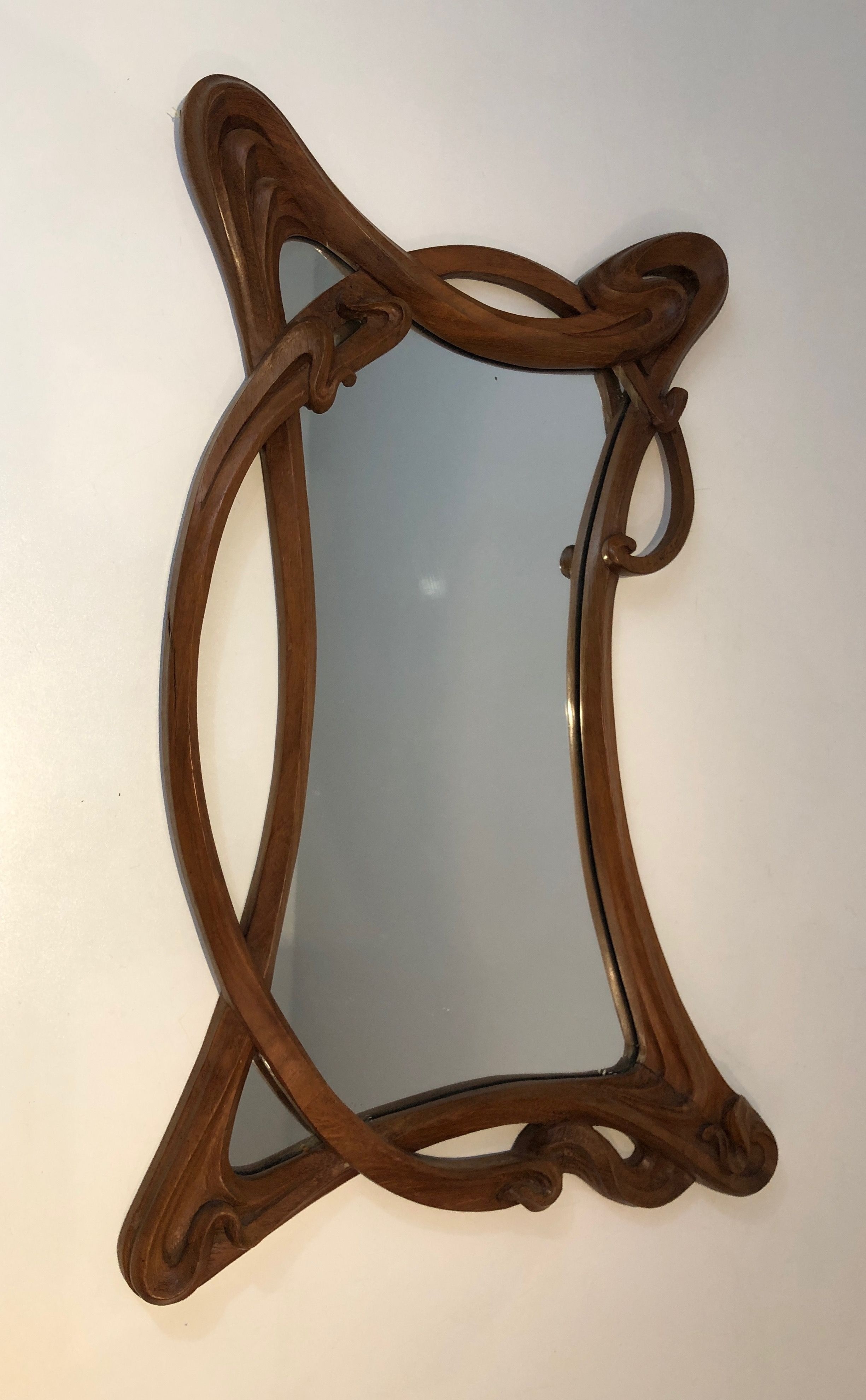This mirror would bring a touch of romantic Belle Époque poetry to an entry hall, a boudoir, or a salon in the Art Nouveau taste. Its naturalistic carved frame harmonizes beautifully with period furniture by Gallé, Majorelle, or Vallin, as well as with contemporary interiors seeking the organic warmth and lyrical craftsmanship of the fin-de-siècle. A piece that speaks eloquently of the French passion for nature-inspired ornament at its most refined.