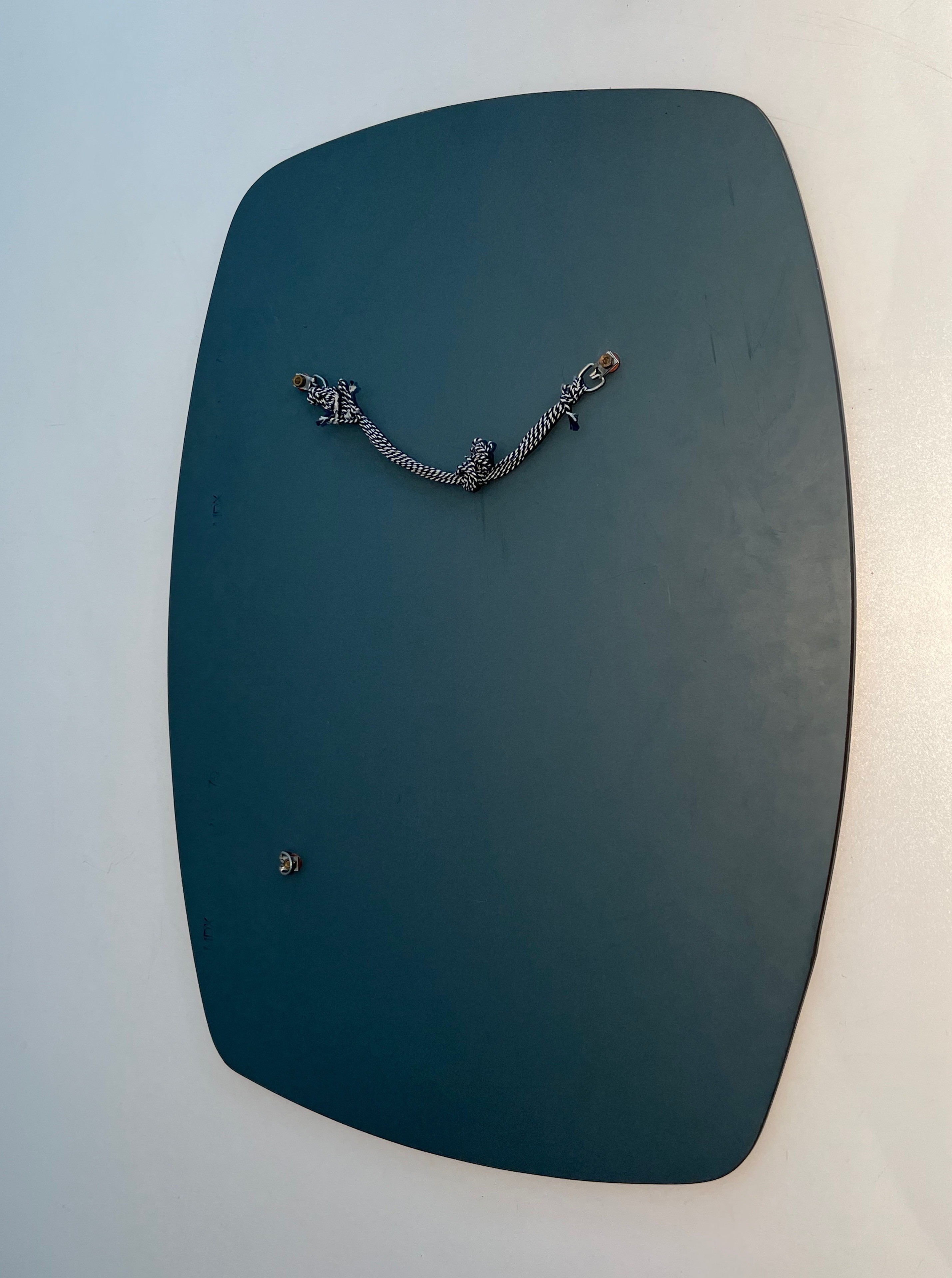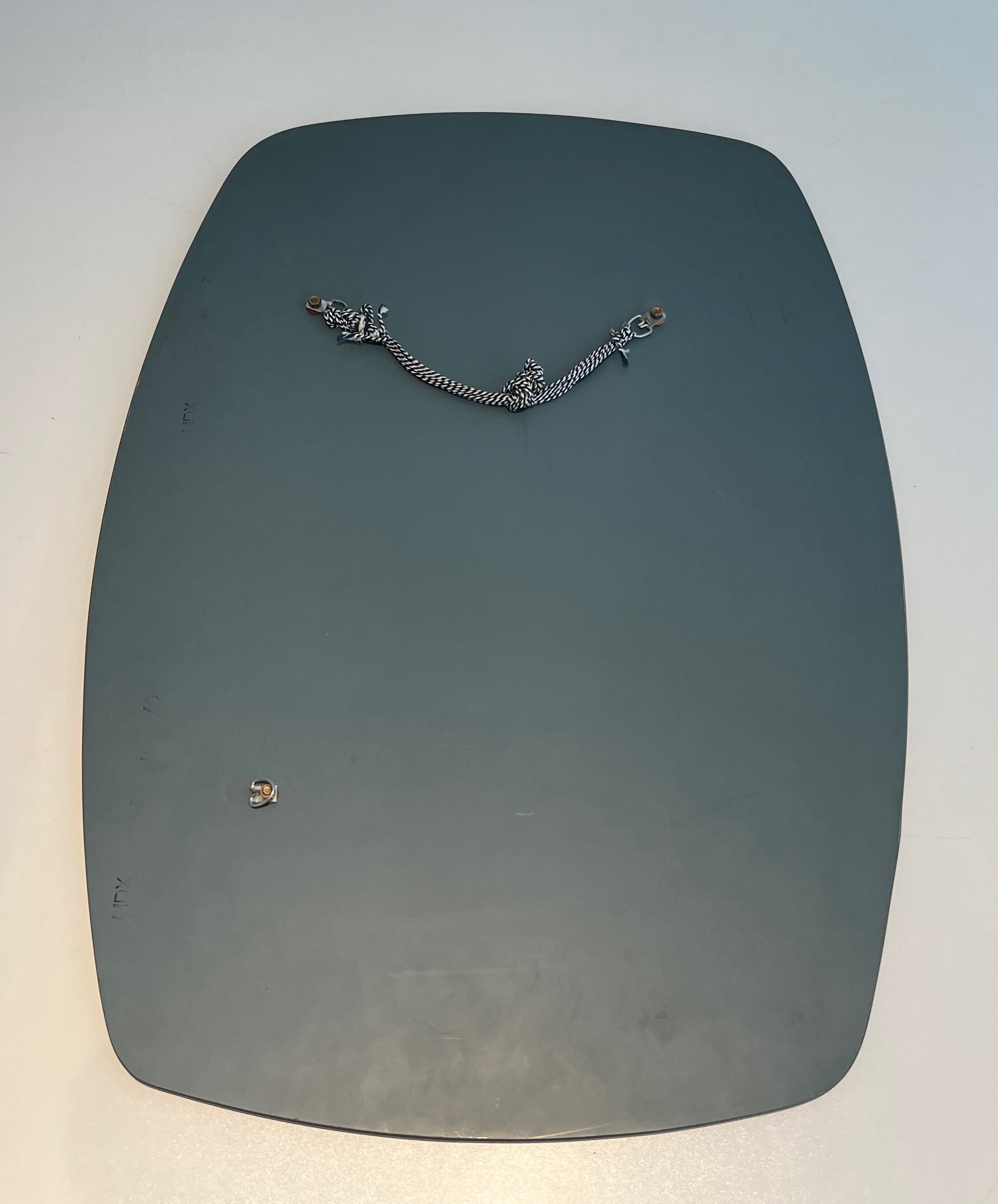 The design of this mirror is characteristically Fontana Arte in its refinement and restraint: the oval form — one of the most classical of mirror silhouettes — is animated by the contrast between the clear central mirror and the surrounding smoked glass border, which creates a subtle chromatic frame that is simultaneously part of the mirror and a decorative element in its own right. This interplay of clear and tinted glass is a technique that Fontana Arte developed to great effect throughout the postwar decades.