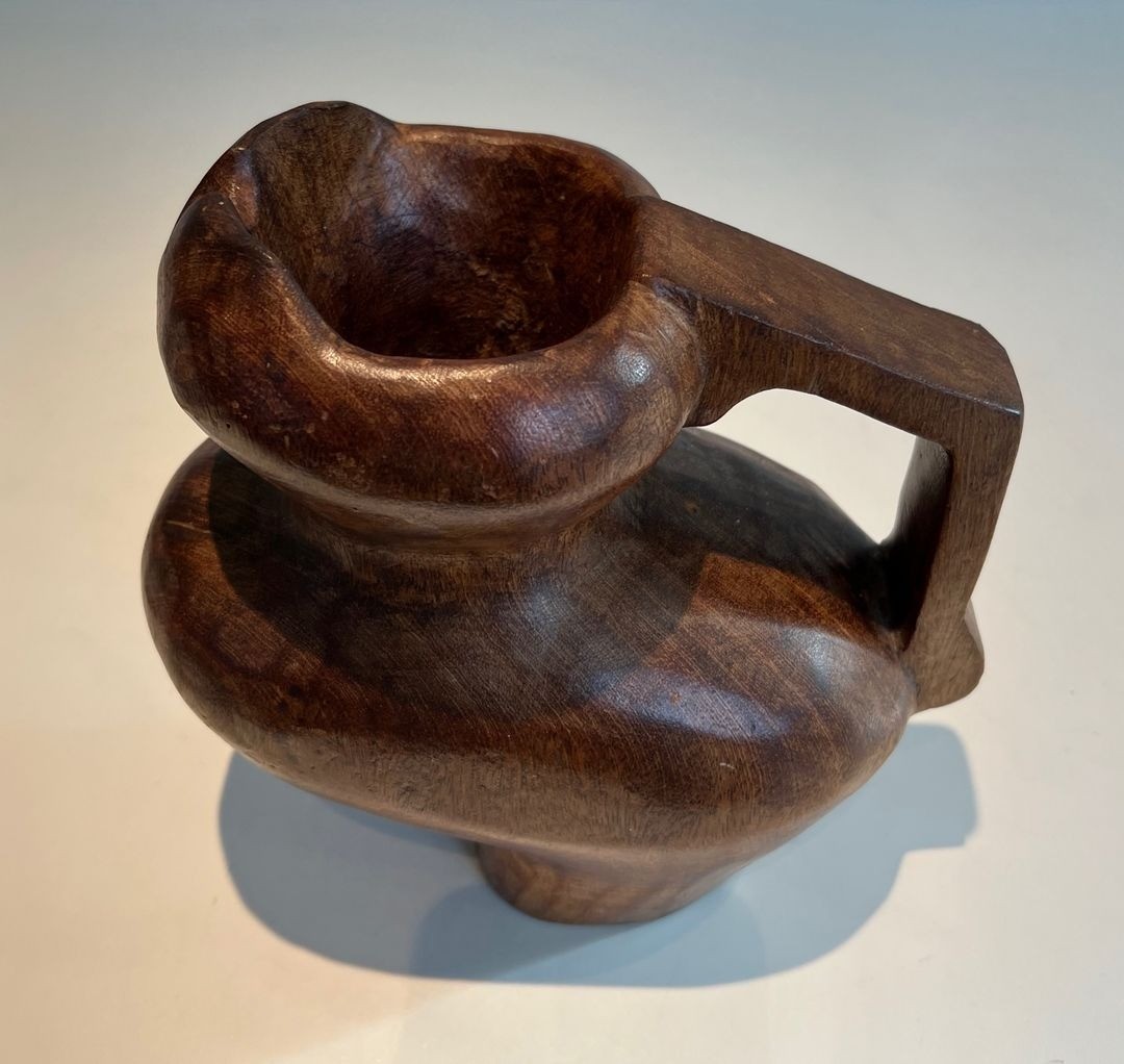 The Brutalist tendency in French applied arts — closely allied to the broader movements of Art Informel and Primitivism — produced a remarkable body of work in wood, ceramic and iron during the 1940s and 1950s. Carved in the spirit of that moment, this pitcher sits naturally alongside the work of artist-craftsmen who rejected the refinements of the pre-war tradition in favour of directness, materiality and emotional intensity.