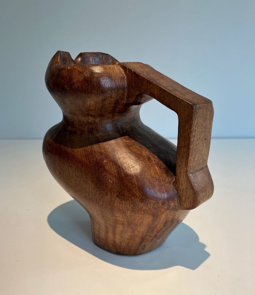 Brutalist Carved Wood Pitcher, France, circa 1950