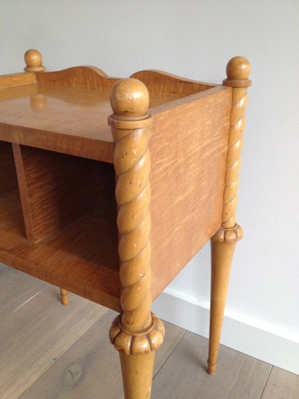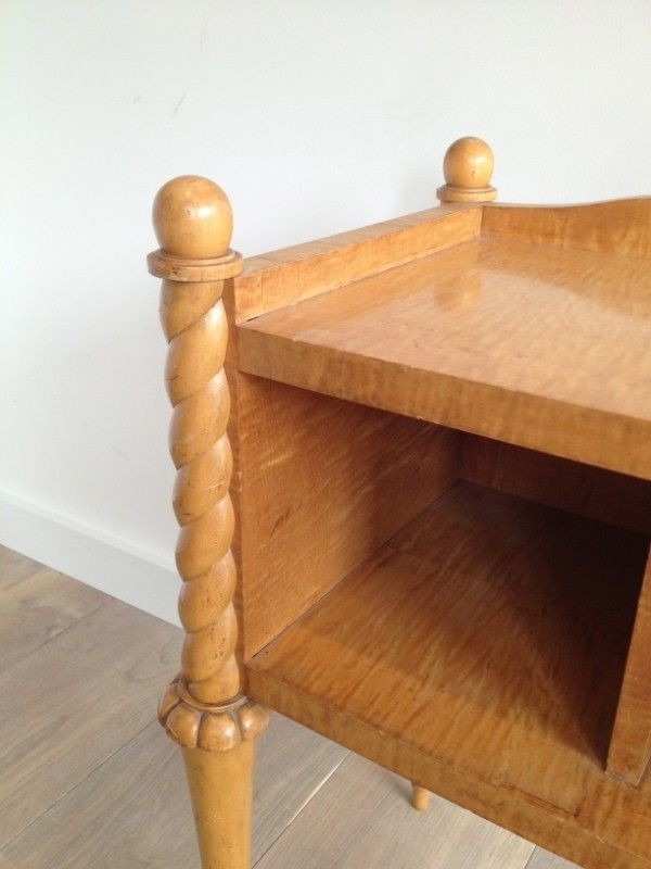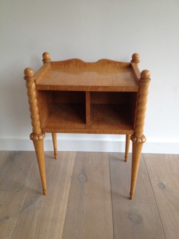 French furniture of the 1940s has long been prized for the technical excellence and formal purity it sustained in the face of considerable material shortages. Makers working in this period refined their mastery of light fruitwoods and precious veneers — sycamore above all, for its delicate, shimmering surface — producing furniture of a particular elegance that speaks to the continued commitment of French craftsmen to the highest standards of their trade. This small table, with its considered proportions and carefully matched veneers, is a sympathetic example of that tradition.