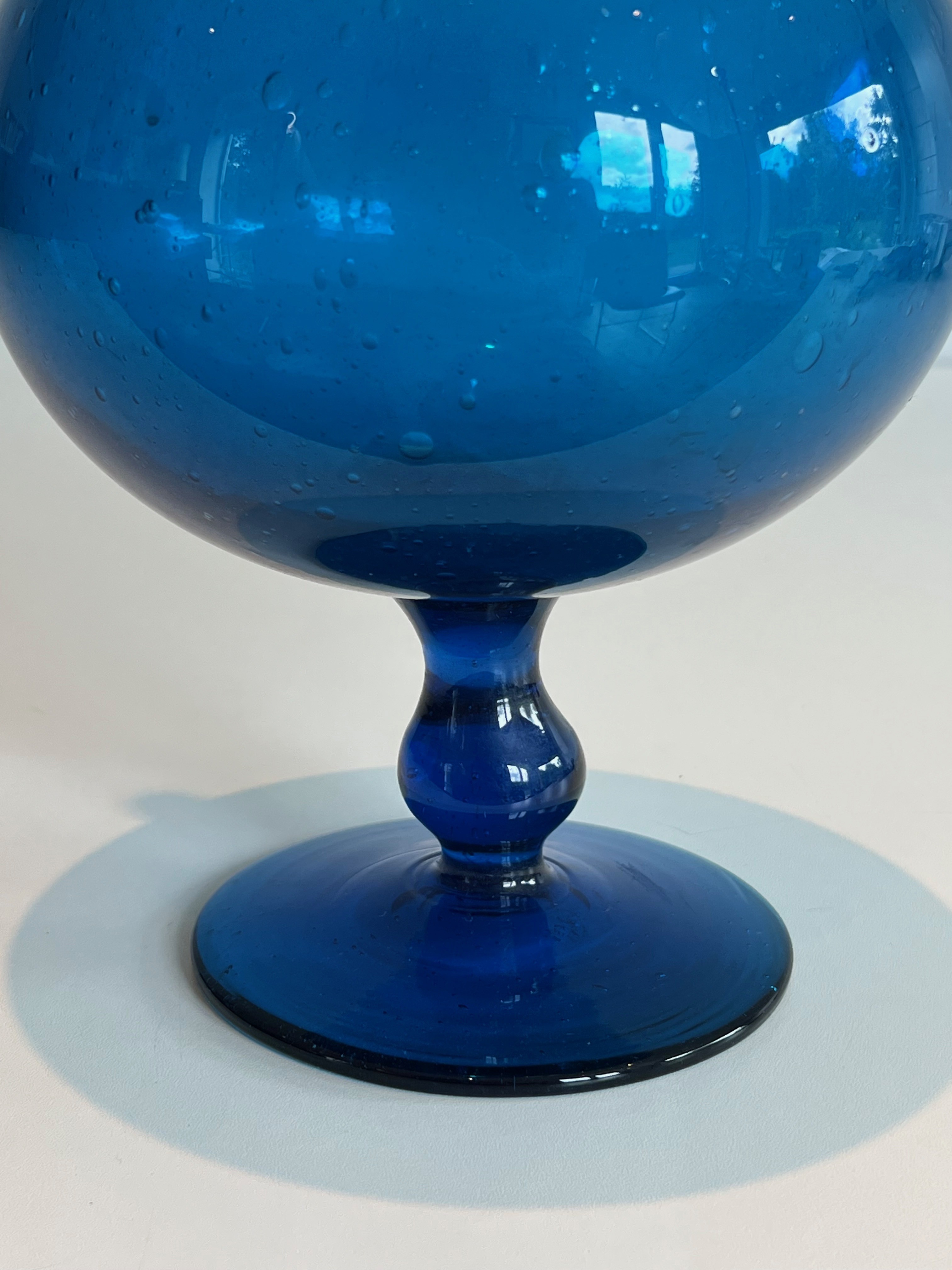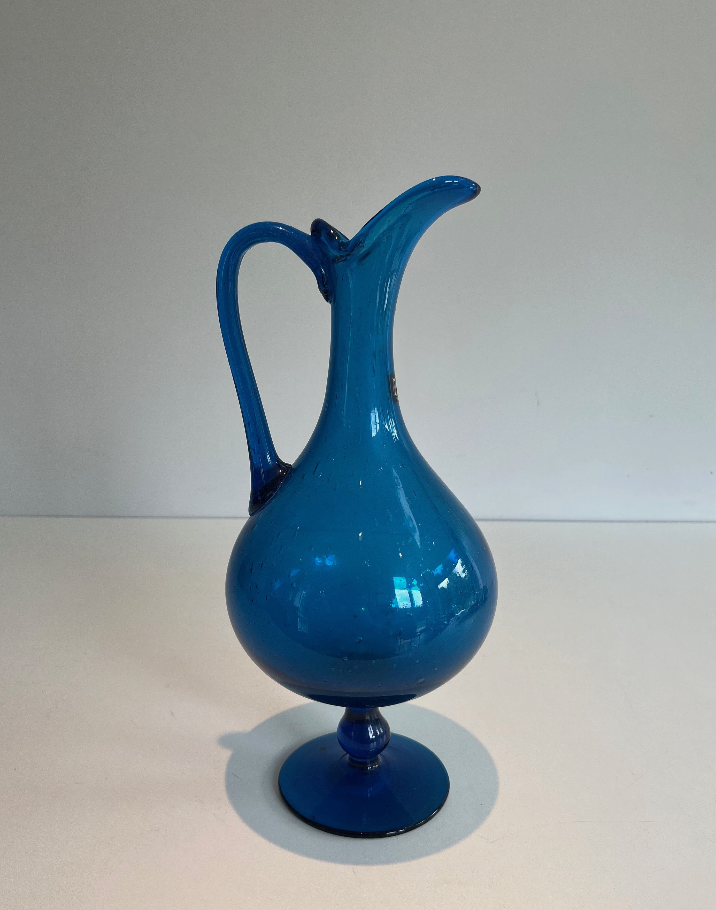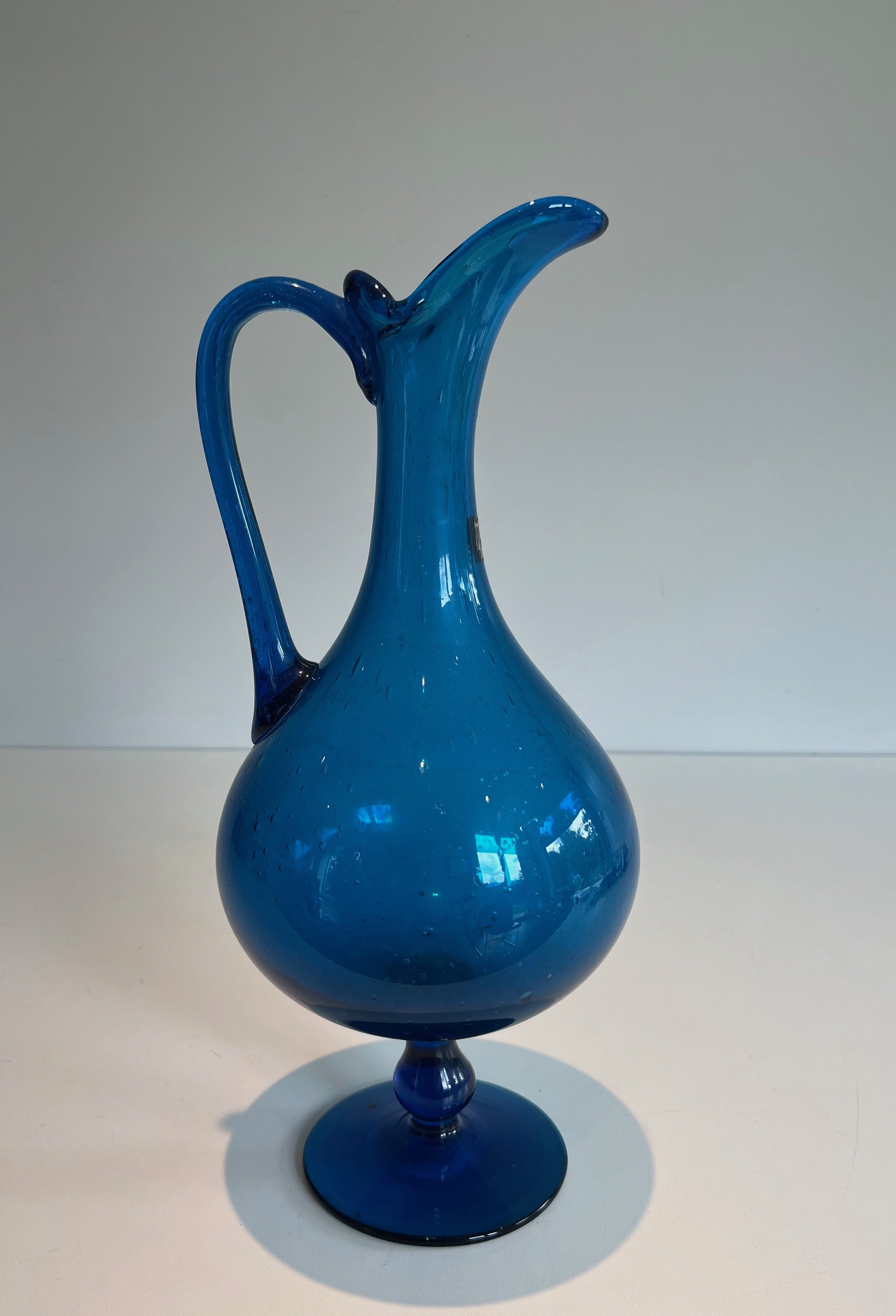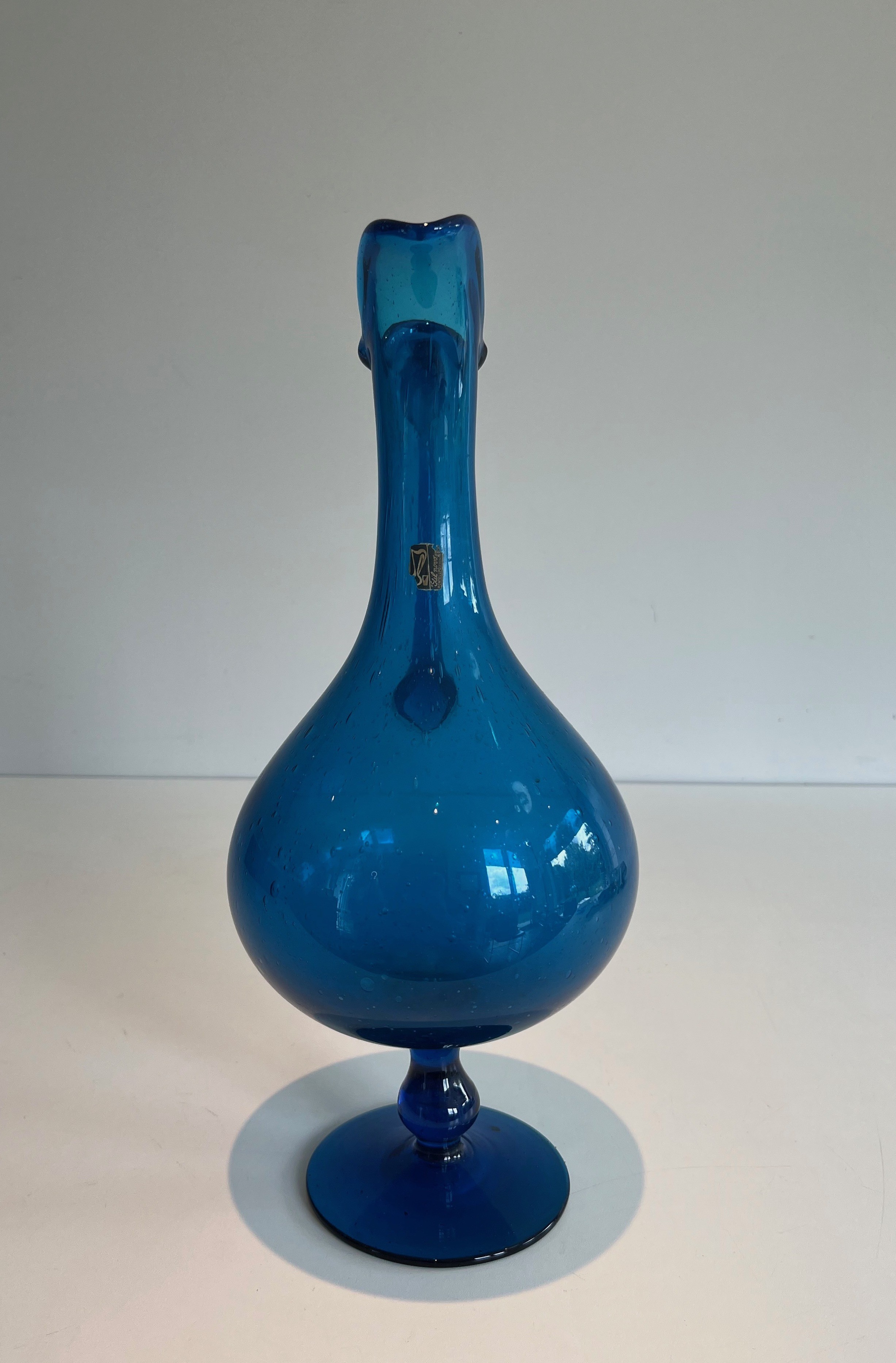 This pitcher is at once a functional object and a work of decorative art, suited equally to display on a sideboard, a console, or a dining table. Its intense blue tonality harmonises with interior schemes from the Scandinavian to the Mediterranean, and it makes a particularly striking composition when grouped with other coloured glass objects. A distinguished example of Italian glassmaking artistry from the golden decade of post-war design.