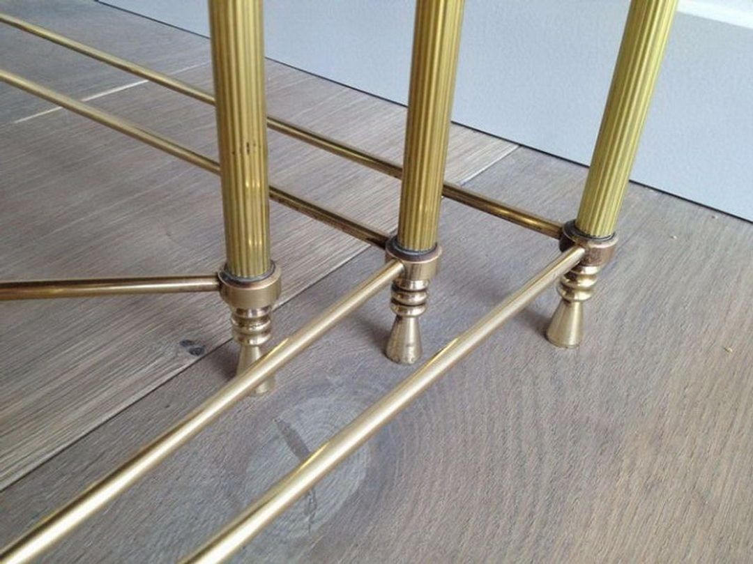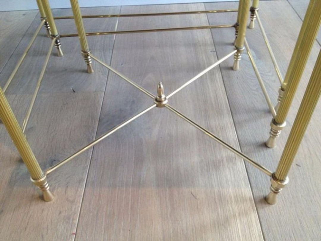 Sets of neoclassical brass nesting tables of this quality are increasingly sought after by collectors and interior designers for their combination of elegance, practicality, and period character.