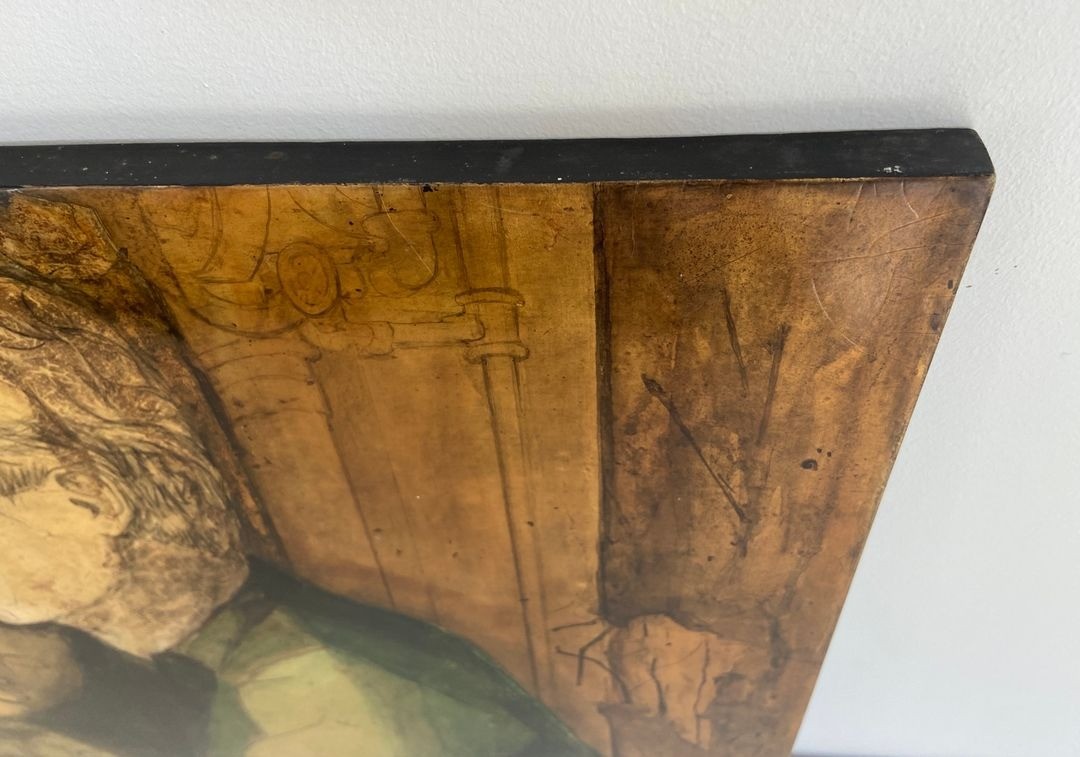 In excellent condition, retaining the full brilliance of its lacquered surface. Overall dimensions: 90 cm wide by 65 cm tall (panel thickness 1.5 cm). An engaging work for the collector drawn to the Cubist tradition, combining genuine decorative appeal with real pictorial quality.