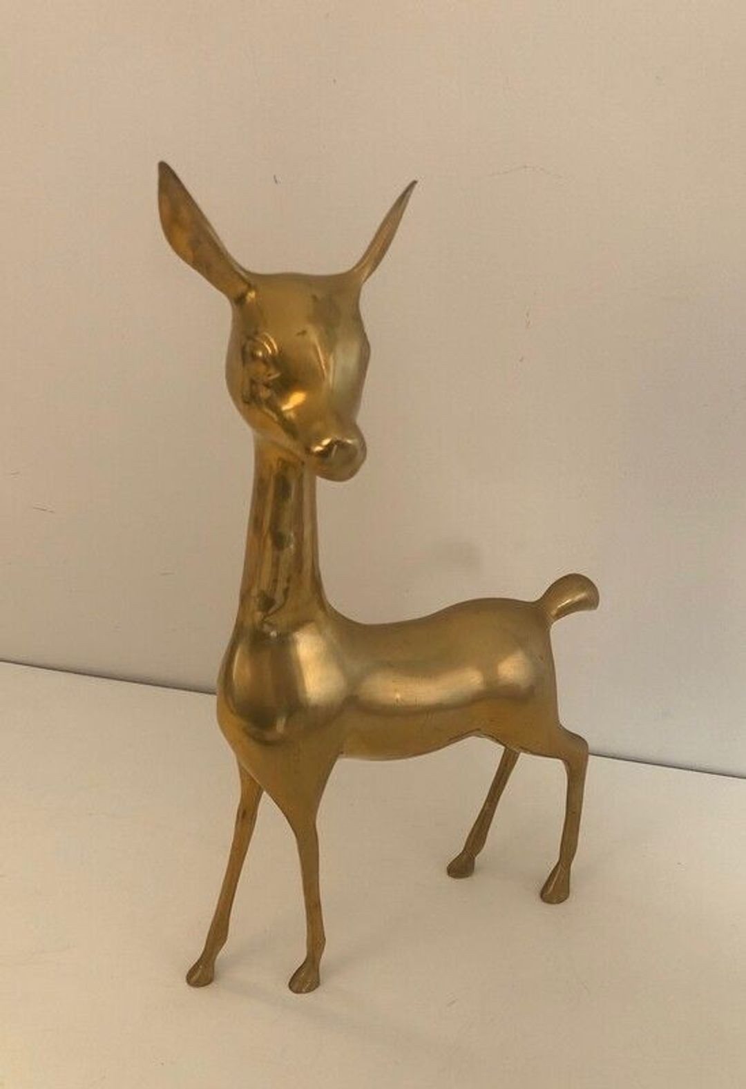 Decorative Modernist Polished Brass Standing Doe Sculpture, French circa 1970