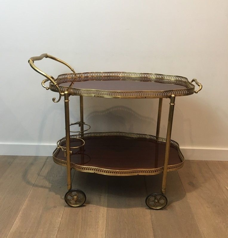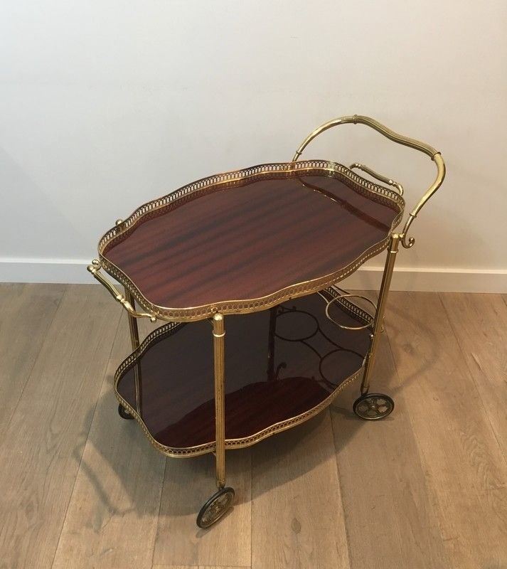 The Neoclassical style that defines this trolley drew its vocabulary from antiquity — fluted columns, laurel friezes, restrained geometric symmetry — a repertoire that had captivated European taste since the late eighteenth century. In France, the style was revived with particular energy during the 1930s and 1940s, as designers and craftsmen sought to reconnect with the clarity and discipline of the Louis XVI and Directoire periods. The drinks trolley — or table roulante — was an indispensable fixture of the bourgeois and aristocratic interior of the era, enabling the graceful circulation of refreshments during receptions and gatherings.